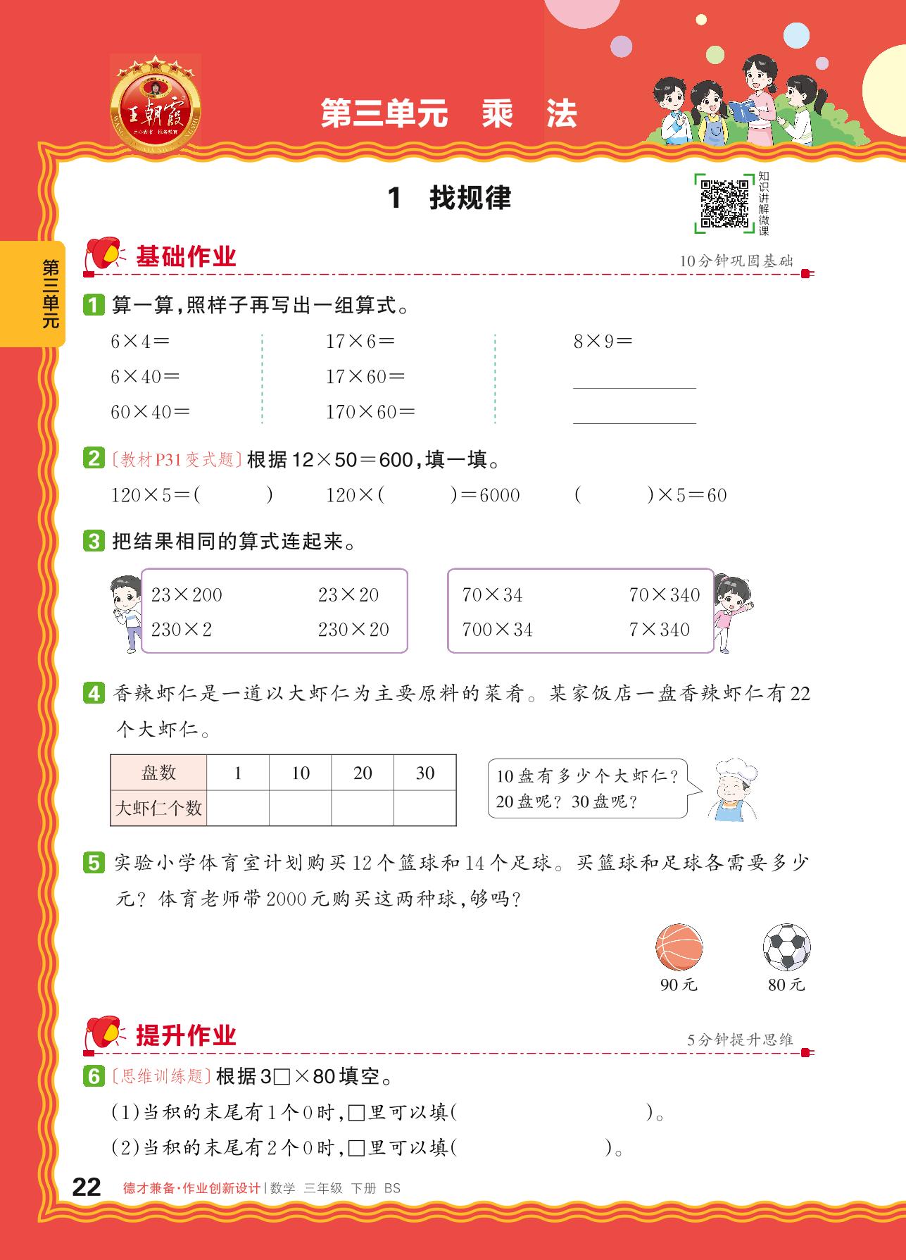 2024春下册三年级数学北师版 第三单元 乘法——1. 找规律_R240124092142389