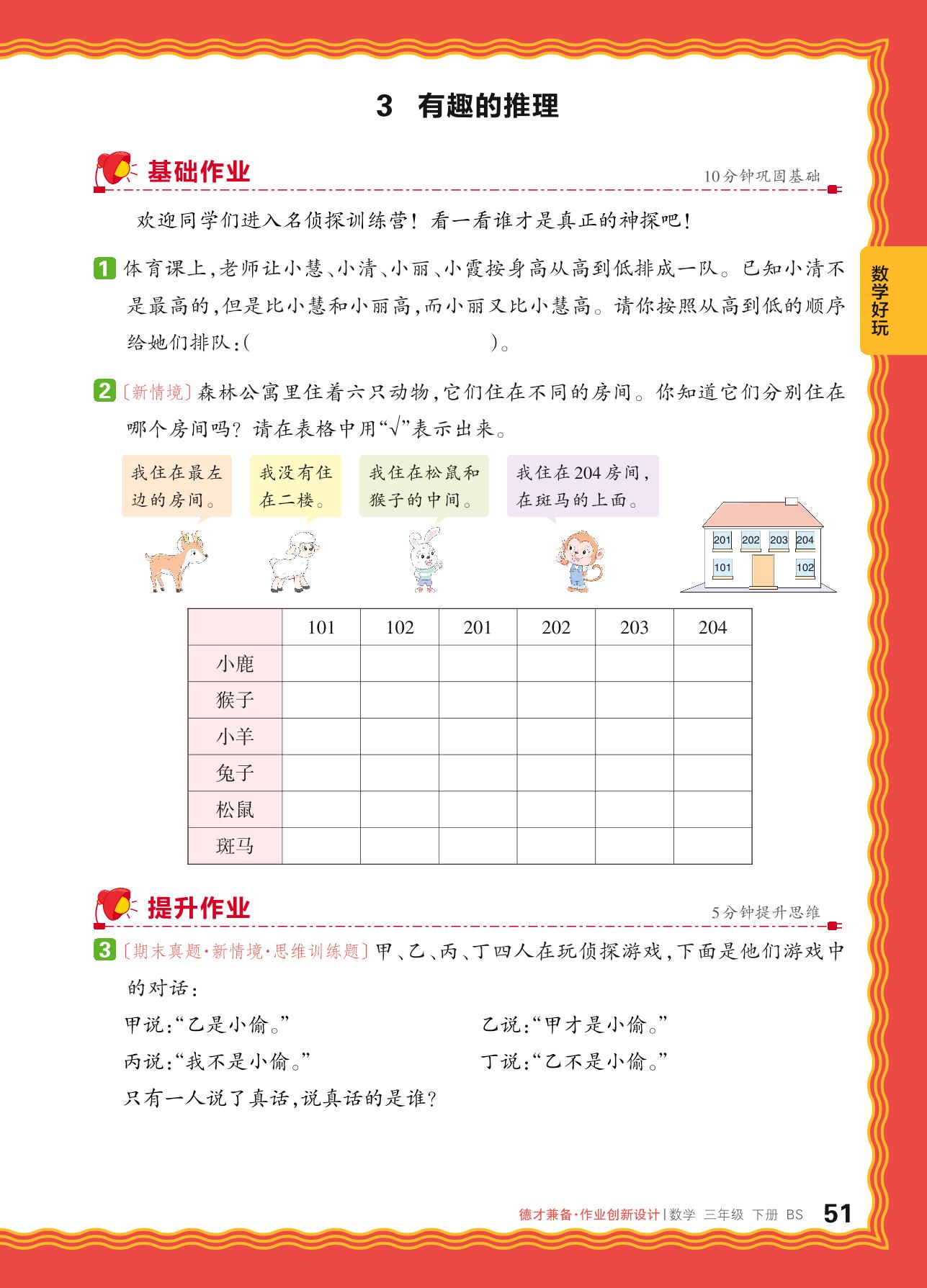 2024春下册三年级数学北师版 数学好玩——3. 有趣的推理_R240124092149371