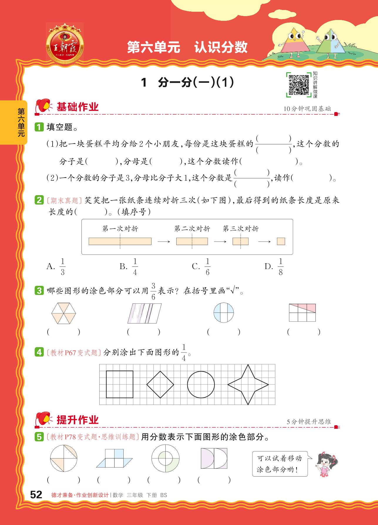2024春下册三年级数学北师版 第六单元 认识分数——1. 分一分(一)(1)