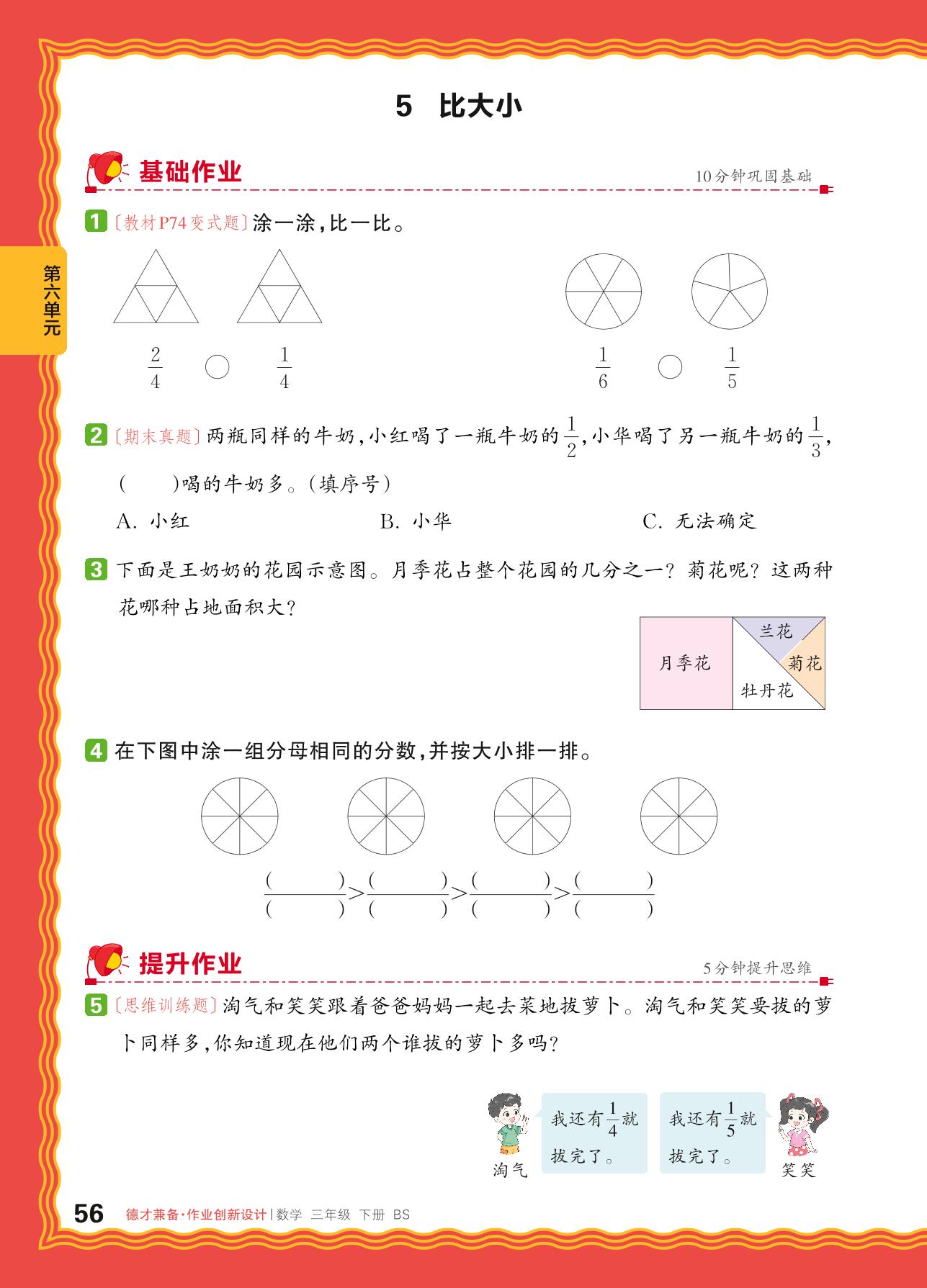 2024春下册三年级数学北师版 第六单元 认识分数——5. 比大小_R240124092152458