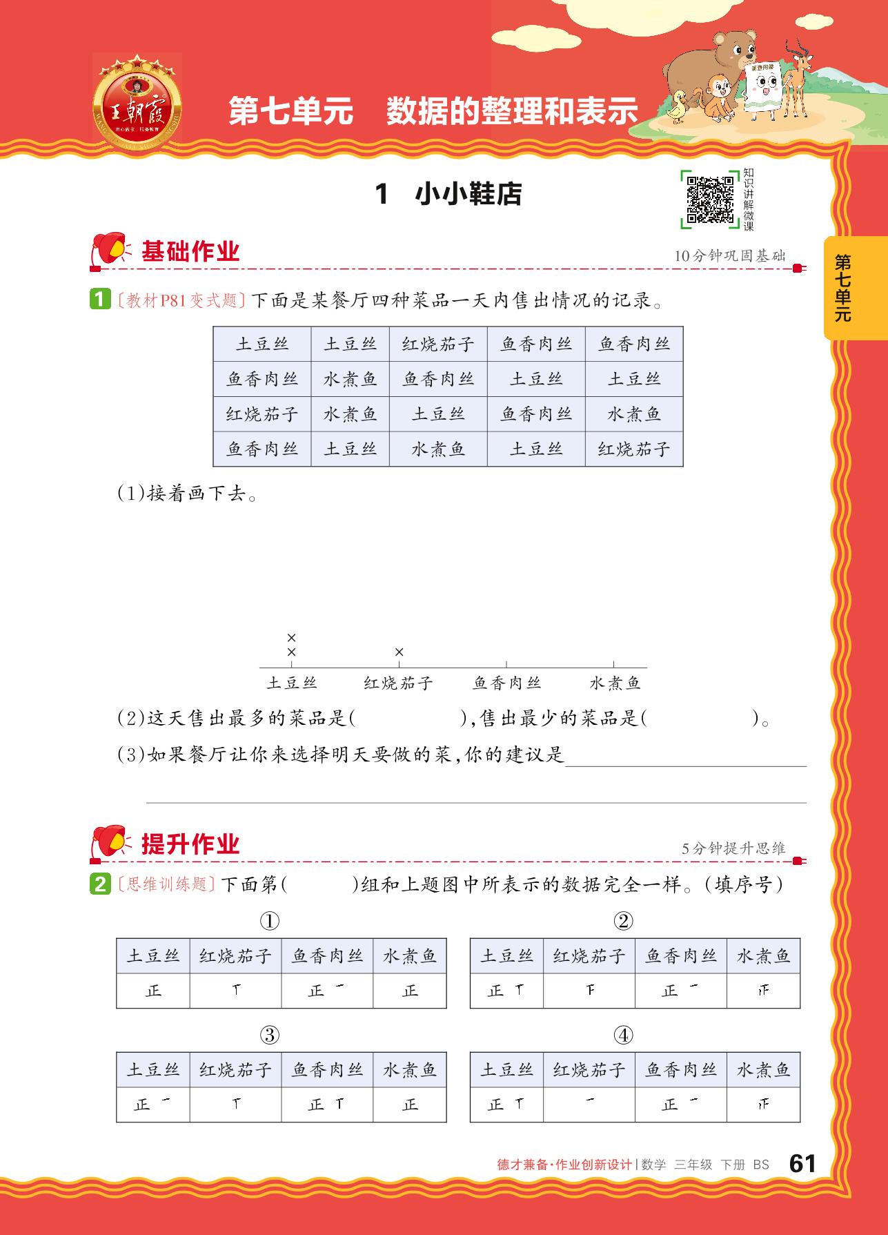 2024春下册三年级数学北师版 第七单元 数据的整理和表示——1. 小小鞋店_R240124092153956