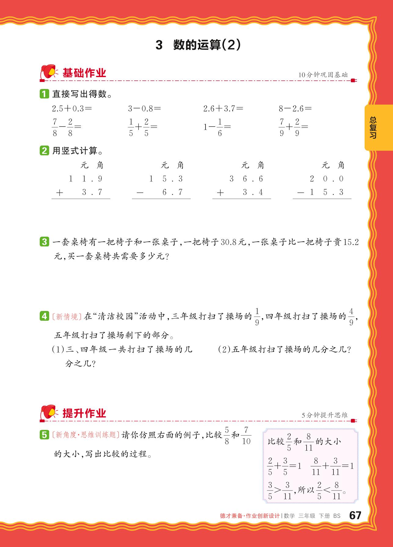 2024春下册三年级数学北师版 总复习——3. 数的运算(2)