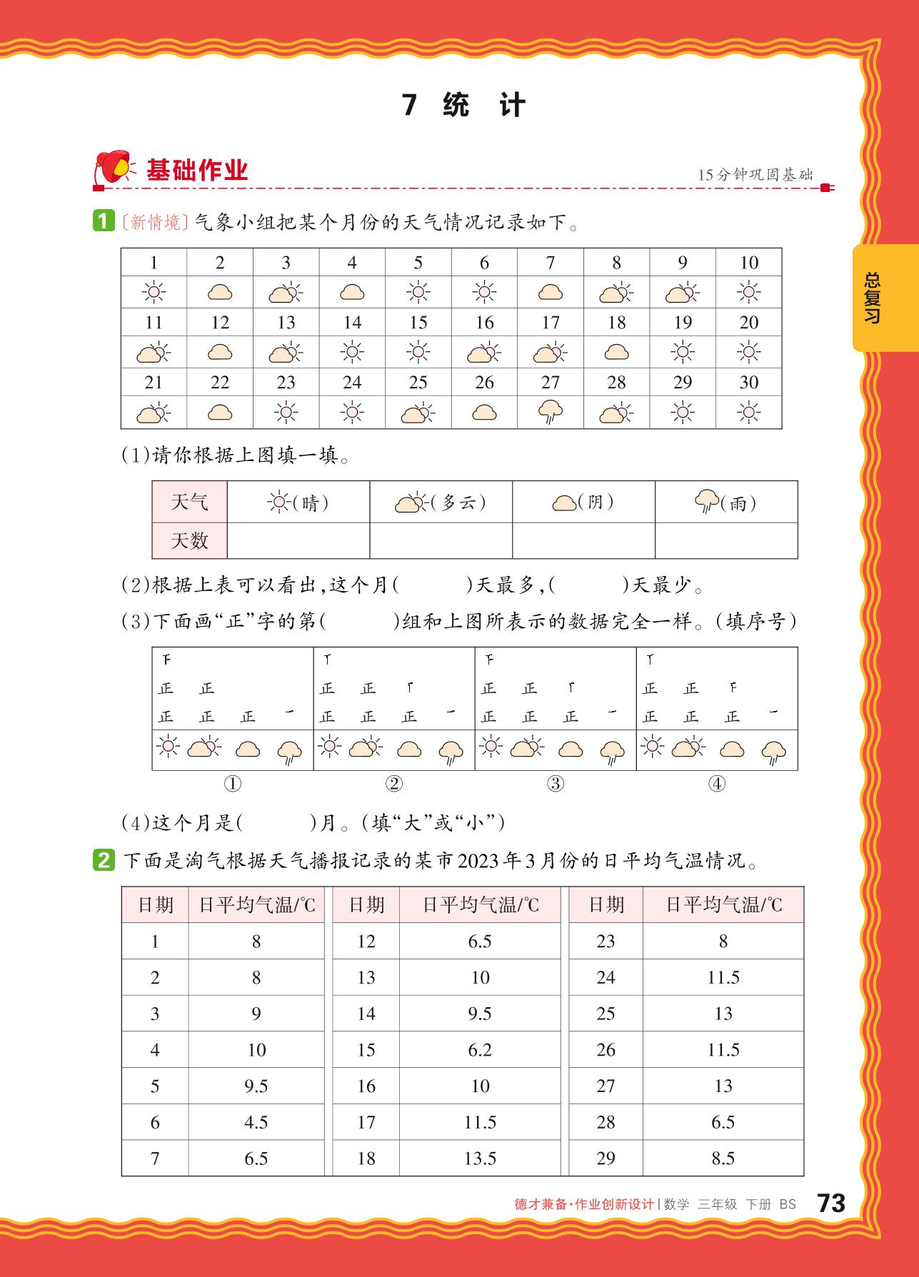 2024春下册三年级数学北师版 总复习——7. 统计