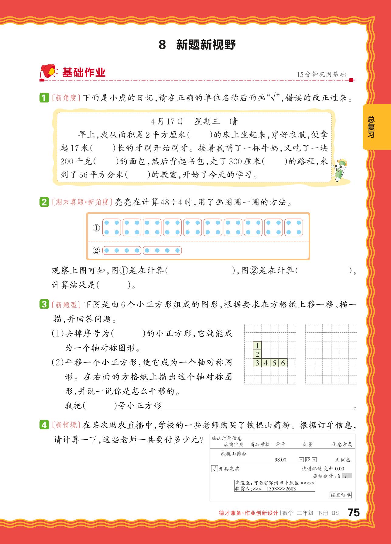 2024春下册三年级数学北师版 总复习——8. 新题新视野