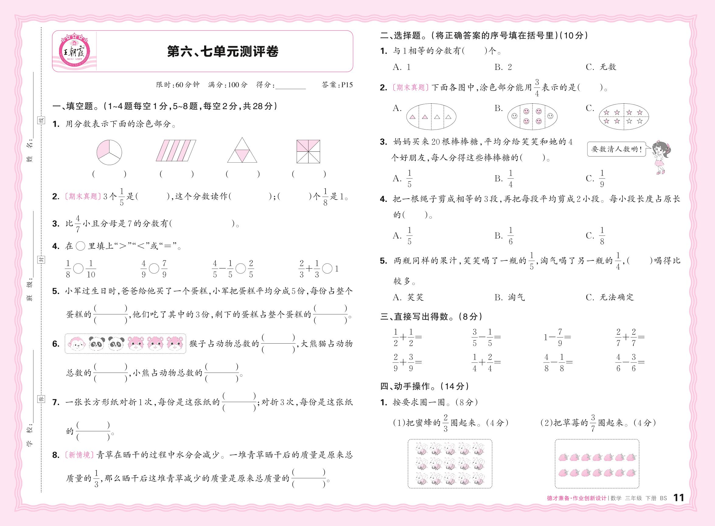 2024春下册三年级数学北师版 第六、七单元测评卷