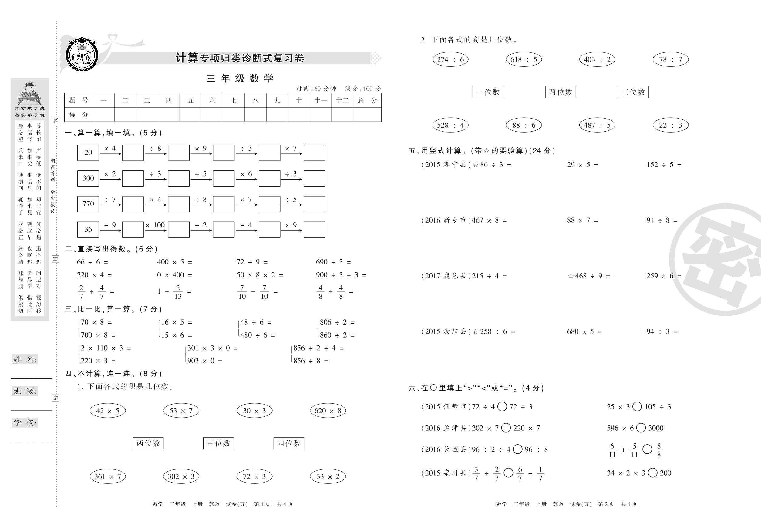 王朝霞期末专项卷三年级上册数学(苏教版)_R210804104433【5】