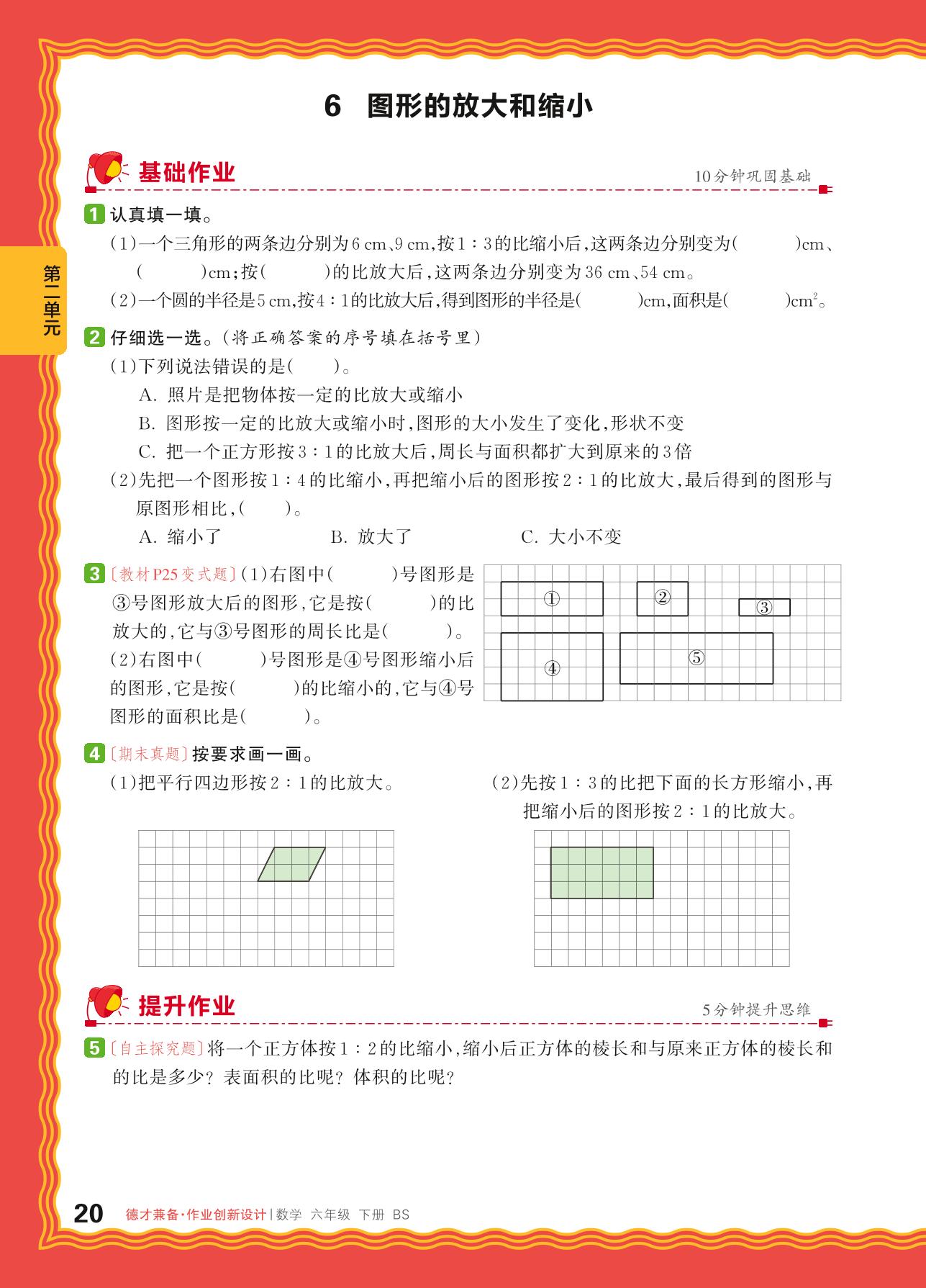 2024春下册六年级数学北师版 第二单元 比例——6. 图形的放大和缩小_R240124095212425