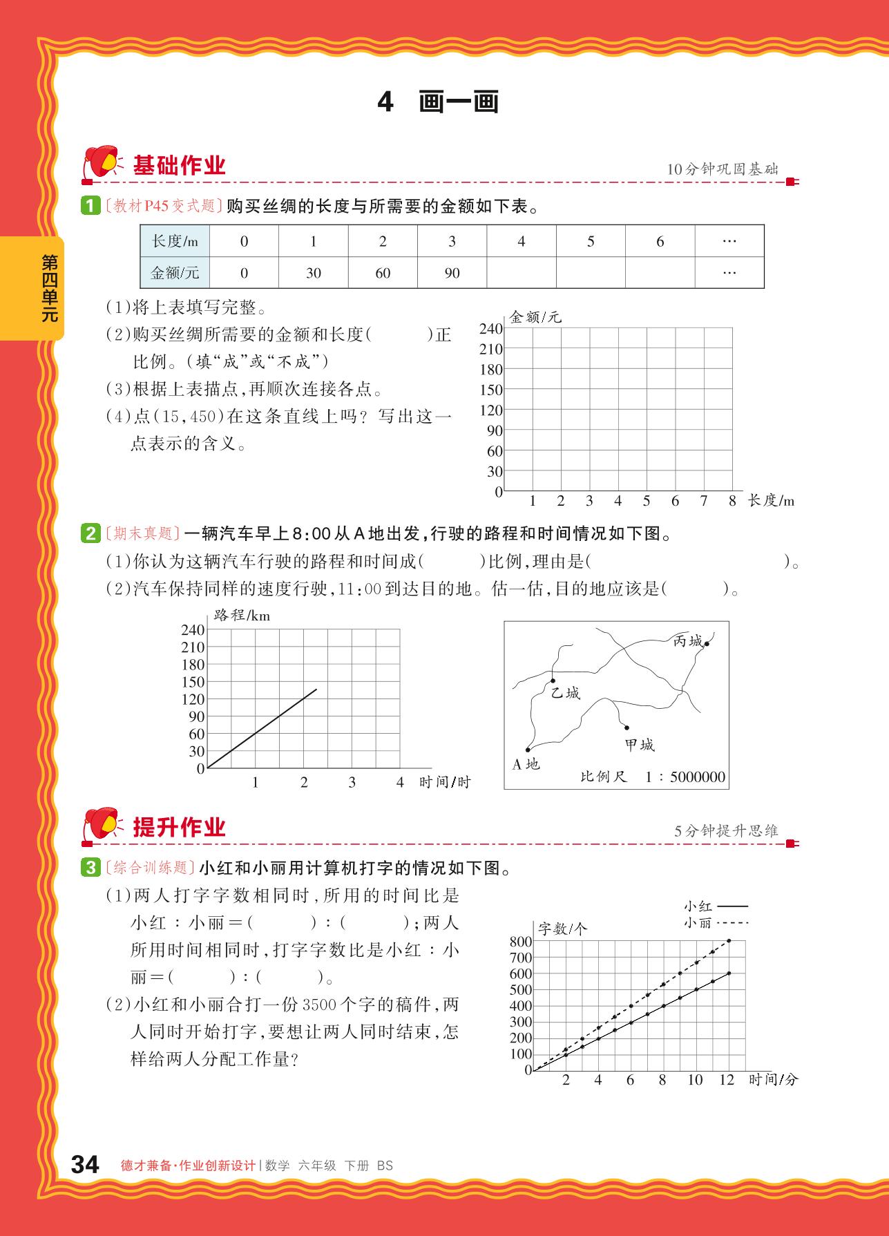 2024春下册六年级数学北师版 第四单元 正比例与反比例——4. 画一画_R240124095217913