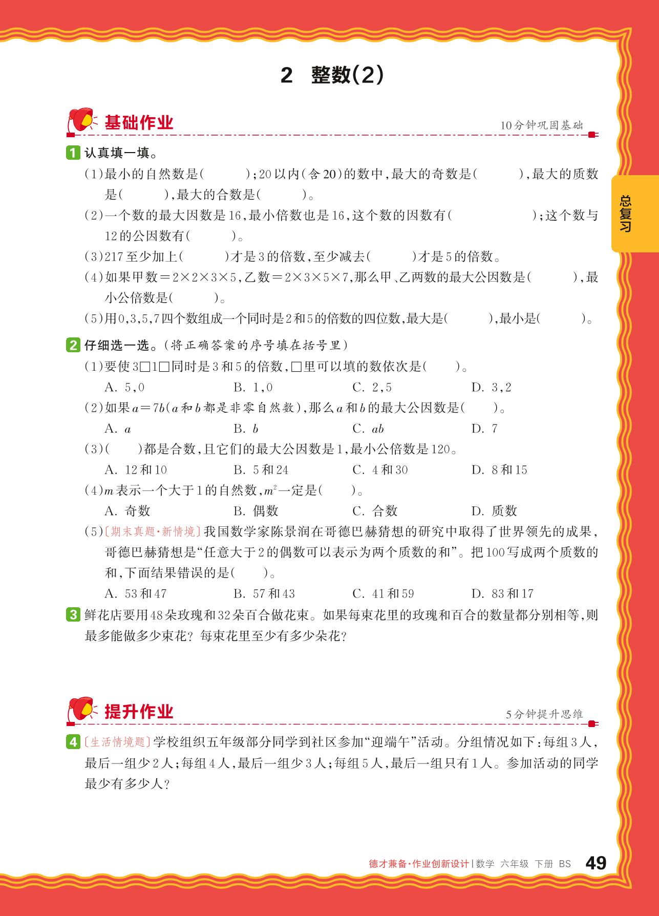 2024春下册六年级数学北师版 总复习 数与代数——2. 整数(2)
