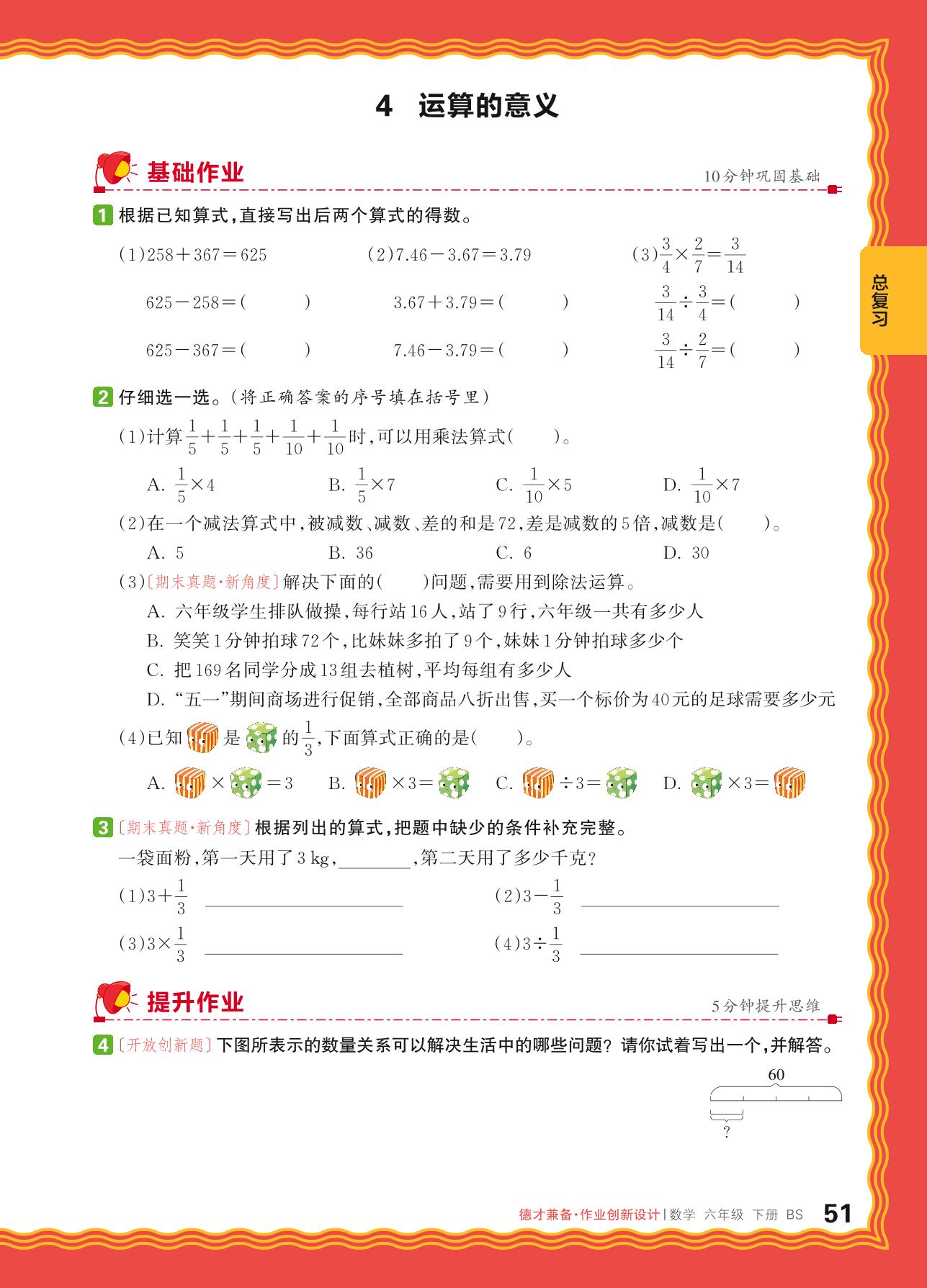 2024春下册六年级数学北师版 总复习 数与代数——4. 运算的意义