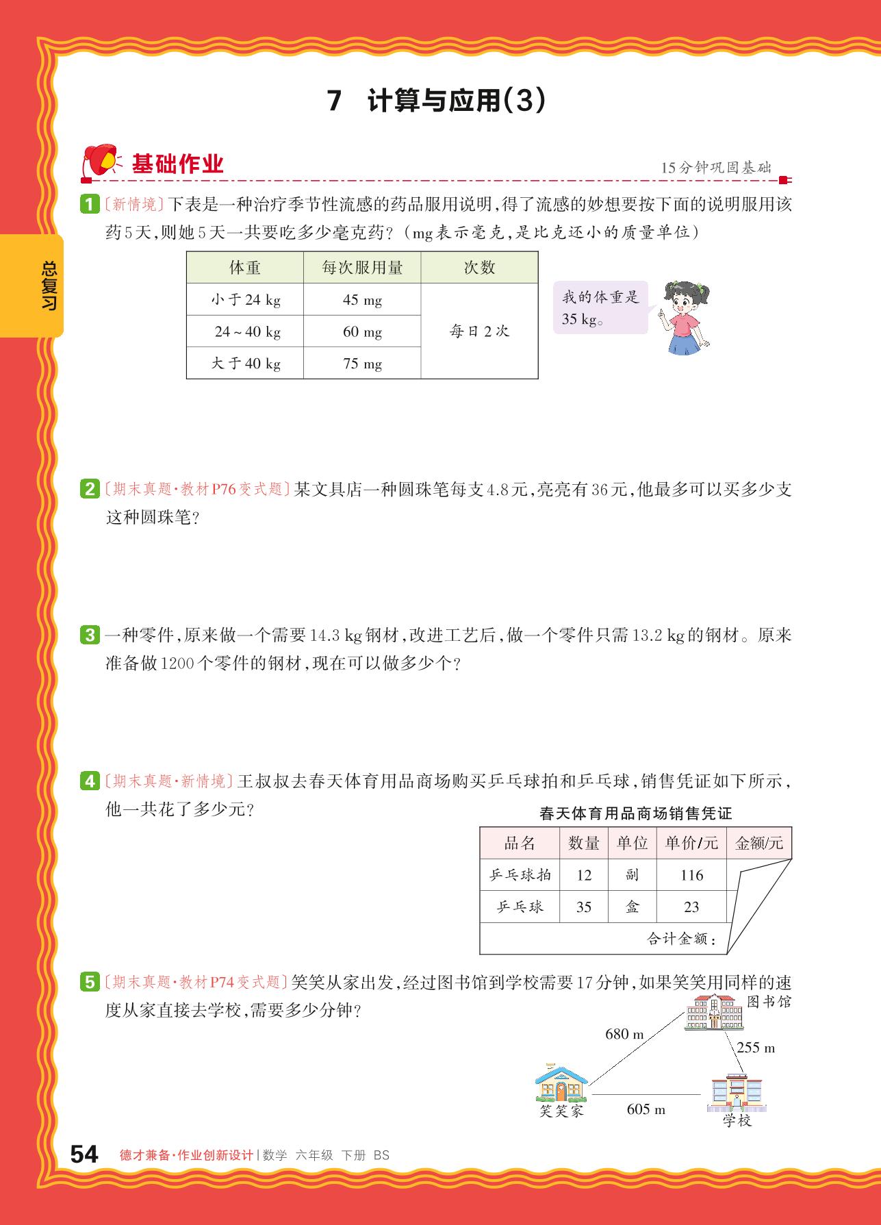 2024春下册六年级数学北师版 总复习 数与代数——7. 计算与应用(3)