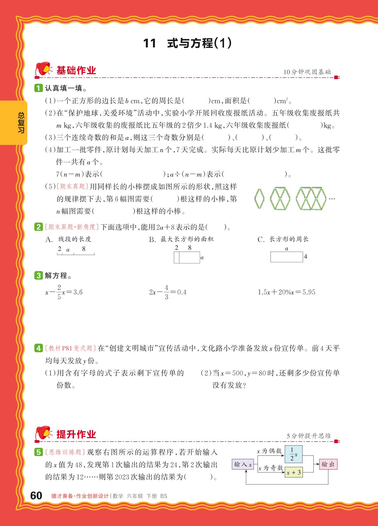 2024春下册六年级数学北师版 总复习 数与代数——11. 式与方程(1)