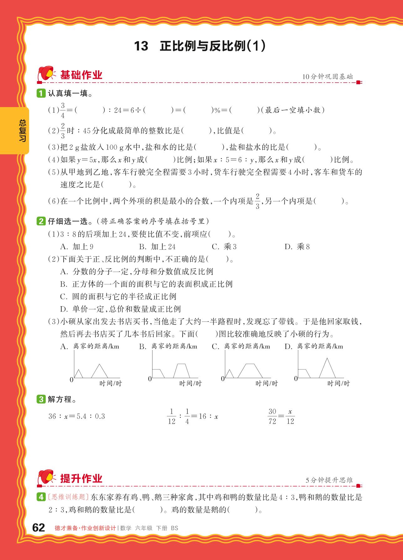 2024春下册六年级数学北师版 总复习 数与代数——13. 正比例与反比例(1)