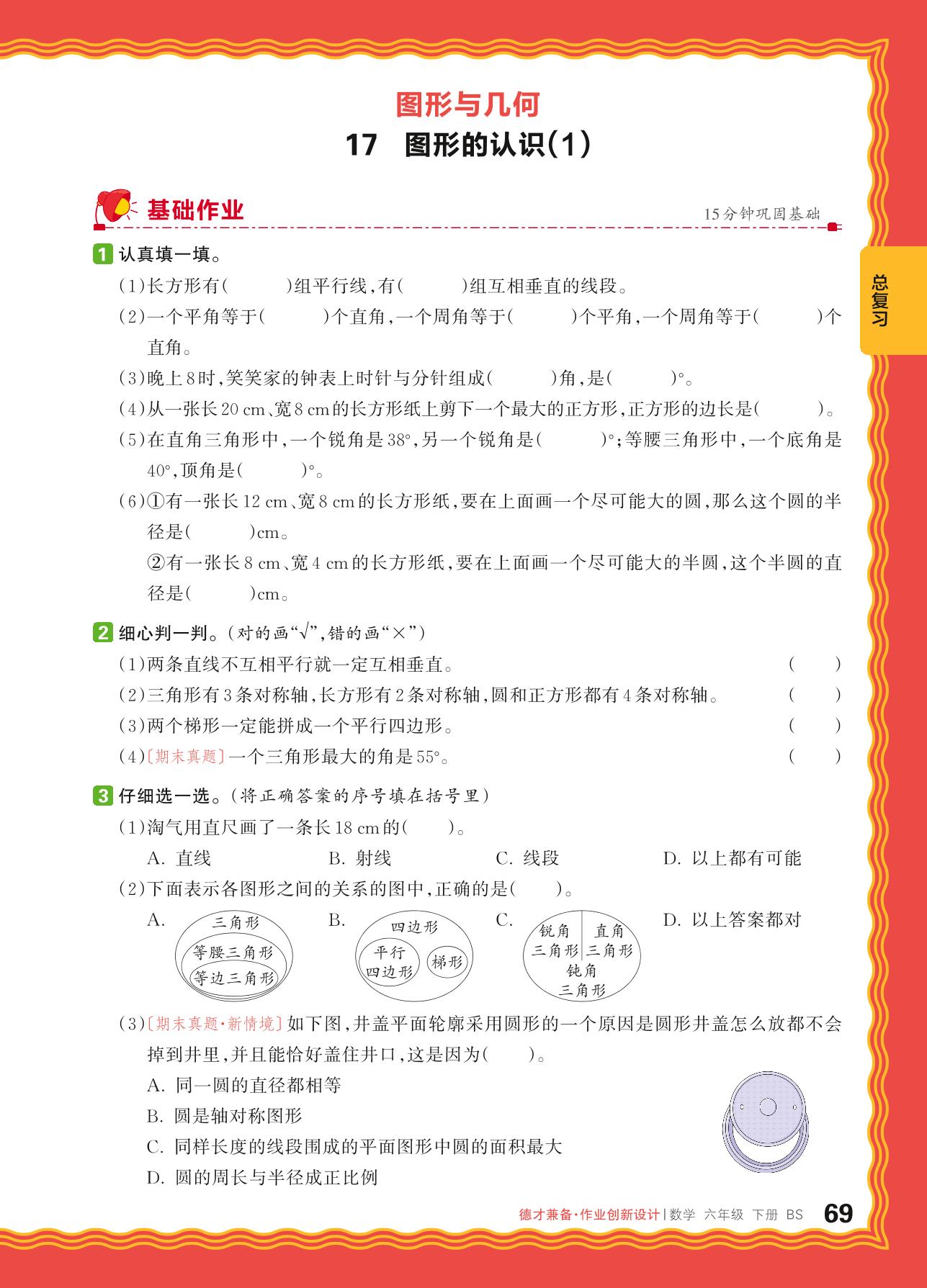 2024春下册六年级数学北师版 总复习 图形与几何——17. 图形的认识(1)