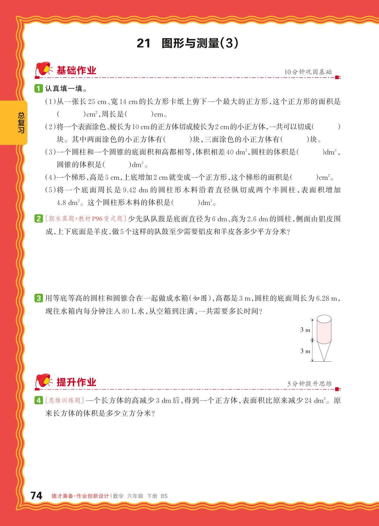 2024春下册六年级数学北师版 总复习 图形与几何——21. 图形与测量(3)