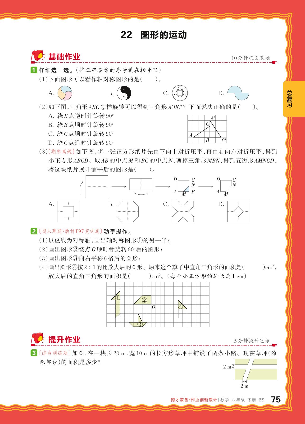 2024春下册六年级数学北师版 总复习 图形与几何——22. 图形的运动