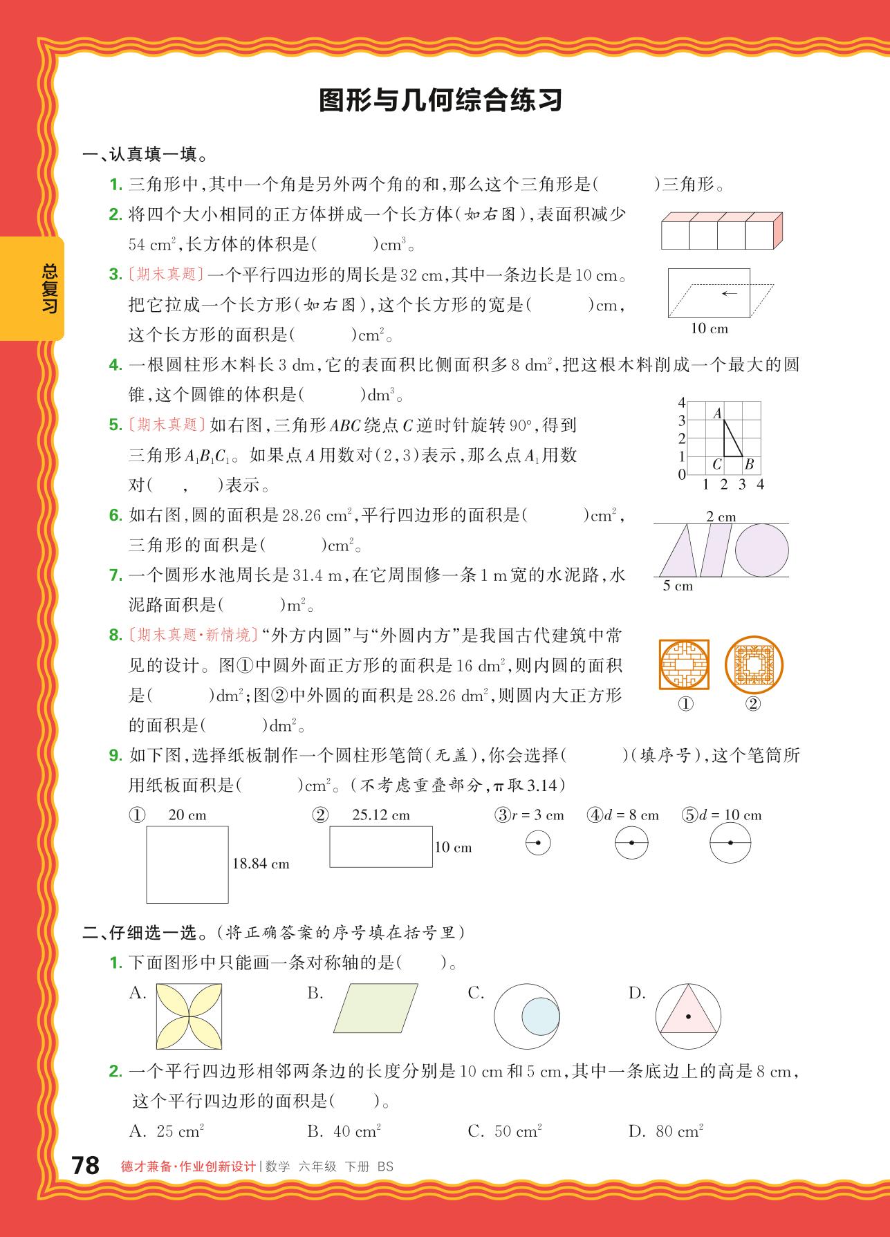 2024春下册六年级数学北师版 总复习——图形与几何综合练习
