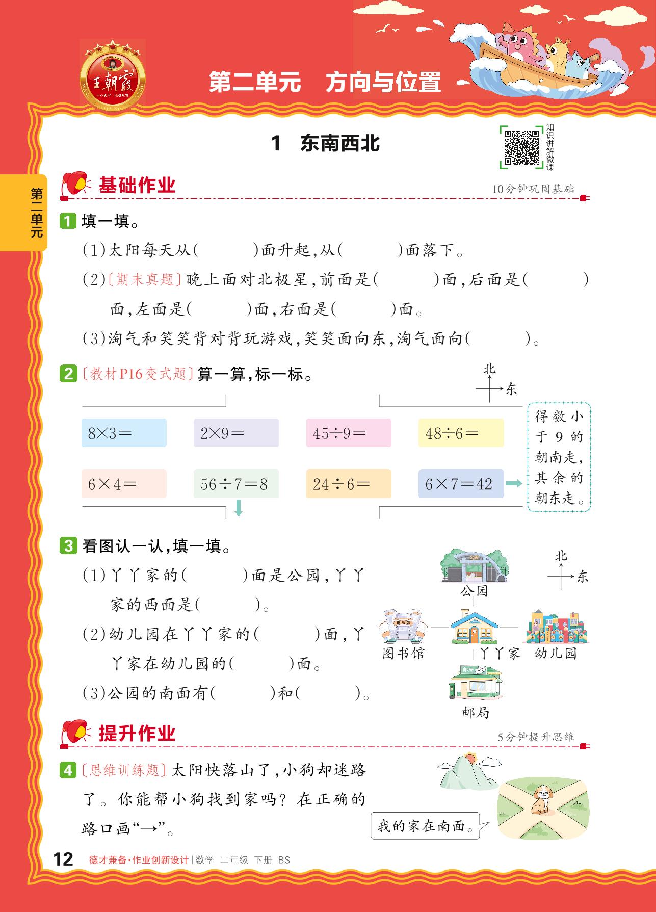 2024春下册二年级数学北师版 第二单元 方向与位置——1. 东南西北_R240124102047635