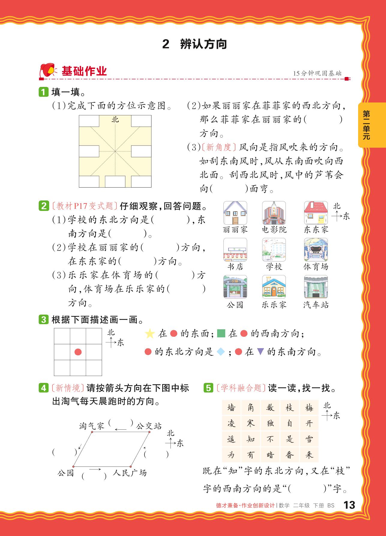 2024春下册二年级数学北师版 第二单元 方向与位置——2. 辨认方向_R240124102047487