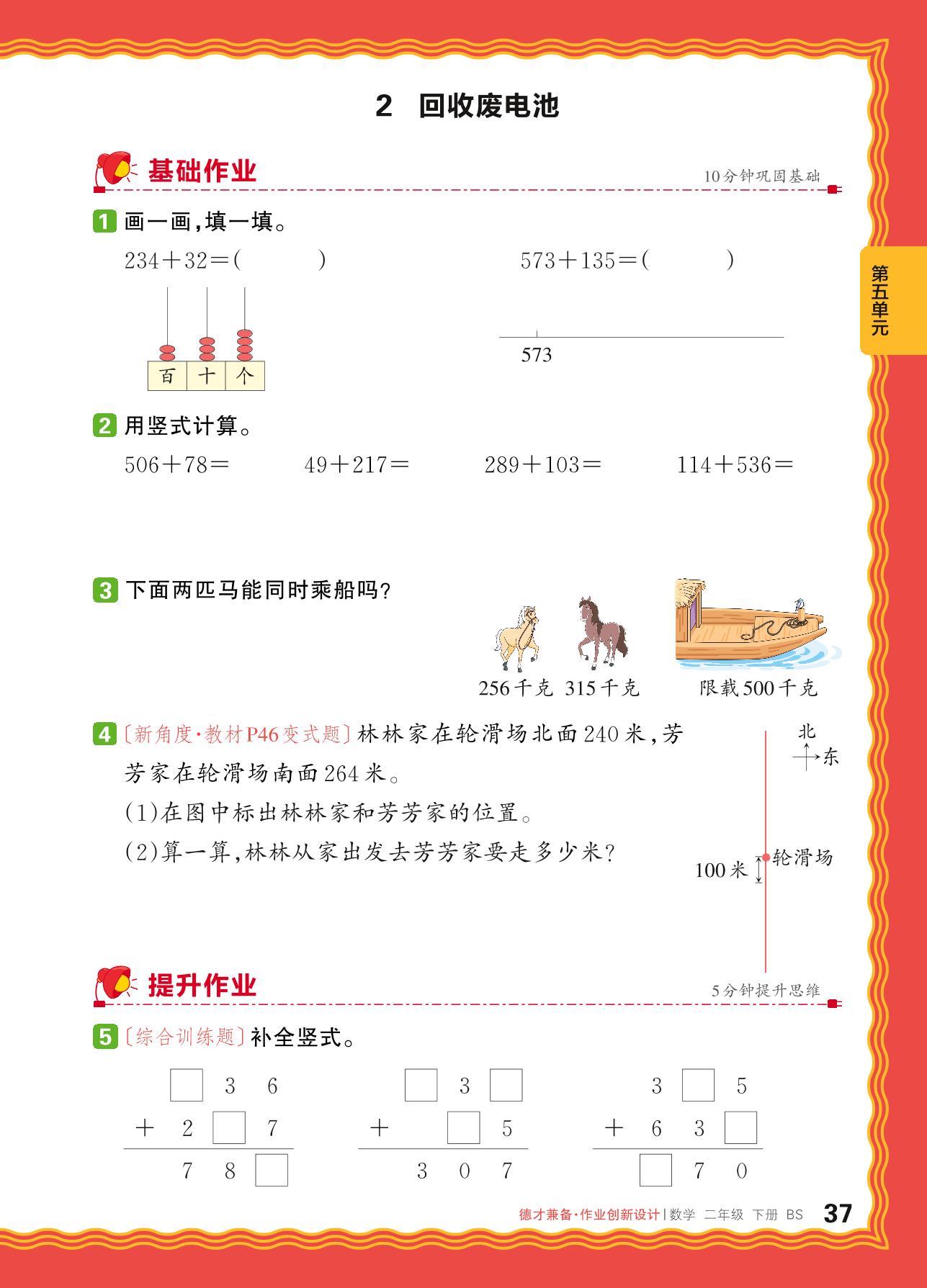 2024春下册二年级数学北师版 第五单元 加与减——2. 回收废电池_R240124102053224