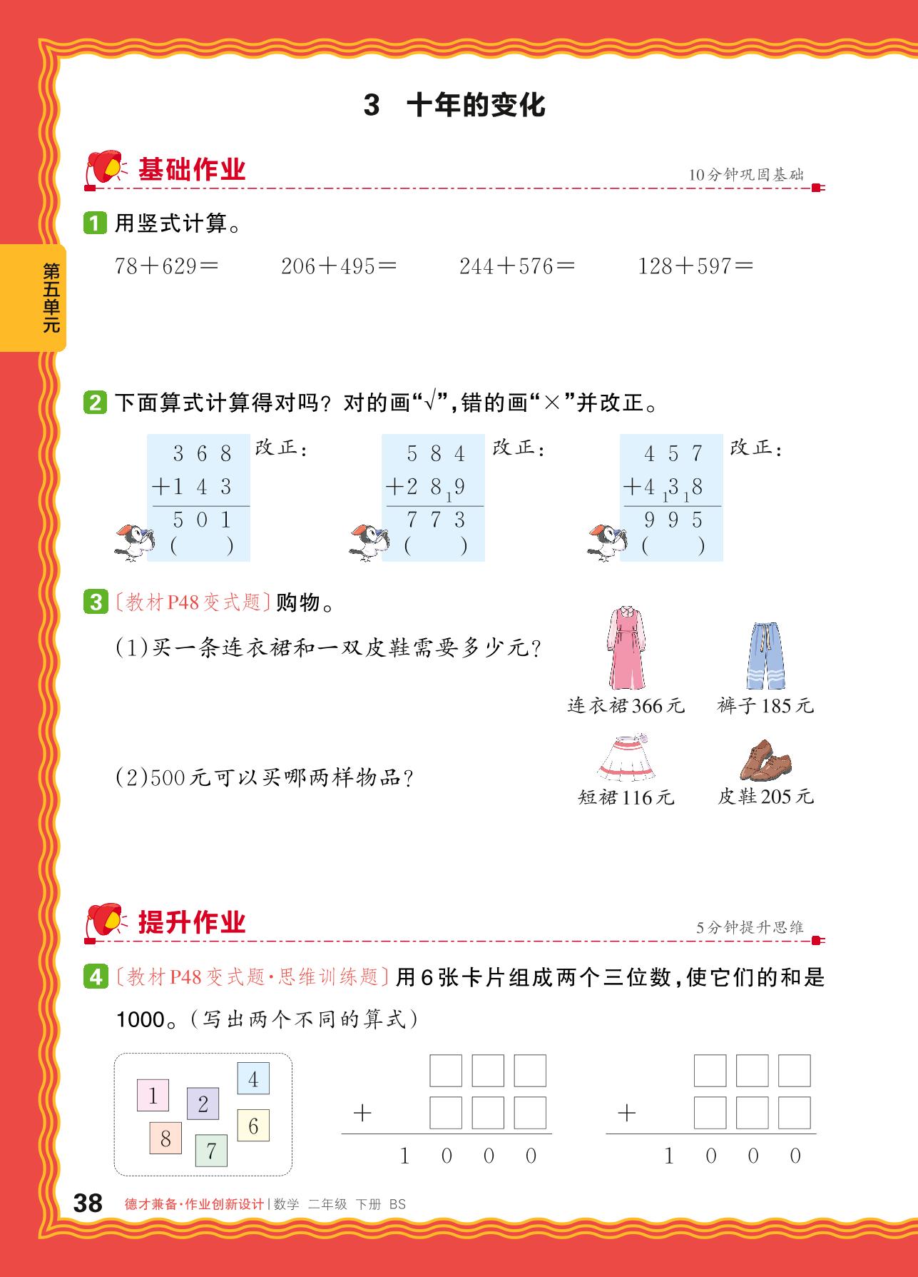 2024春下册二年级数学北师版 第五单元 加与减——3. 十年的变化_R240124102054196