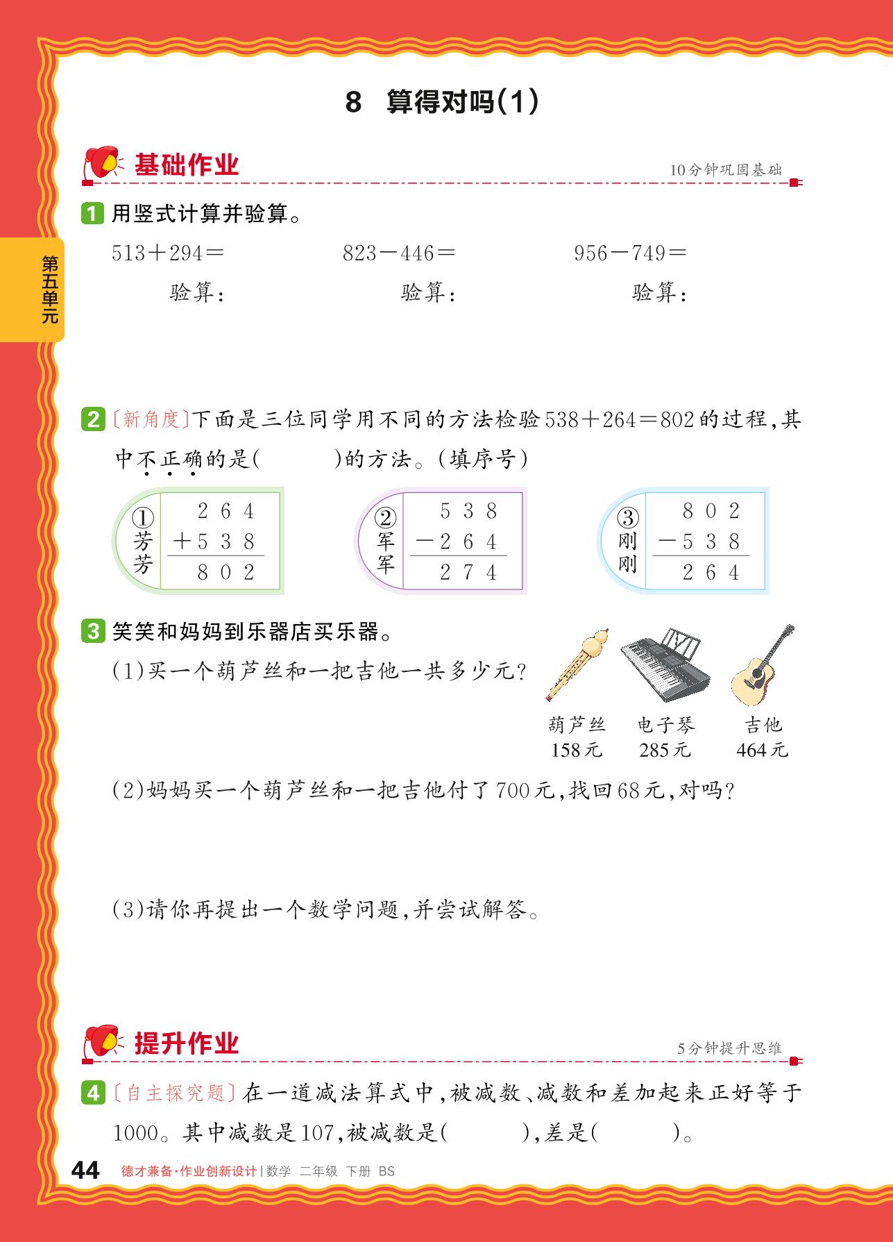 2024春下册二年级数学北师版 第五单元 加与减——8. 算得对吗(1)