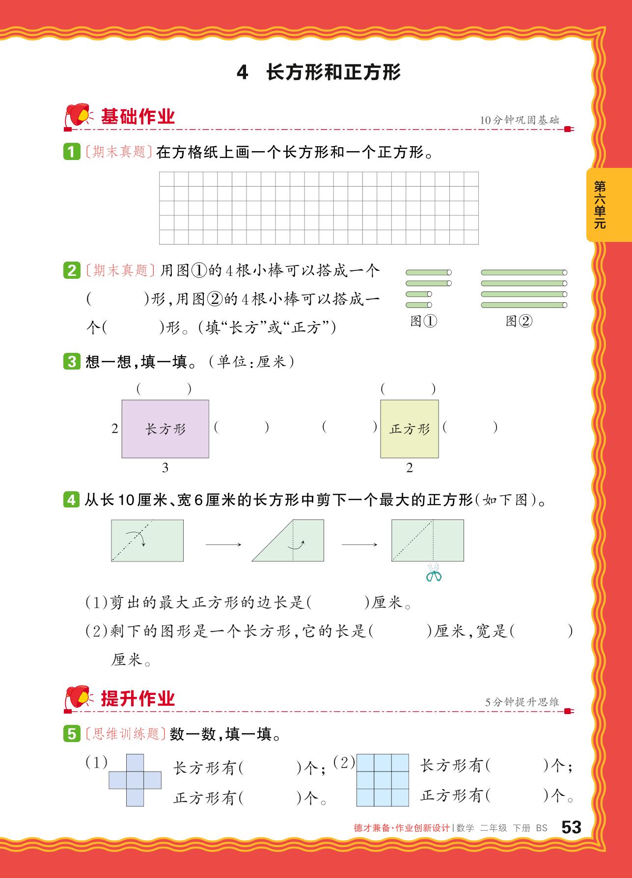 2024春下册二年级数学北师版 第六单元 认识图形——4. 长方形和正方形