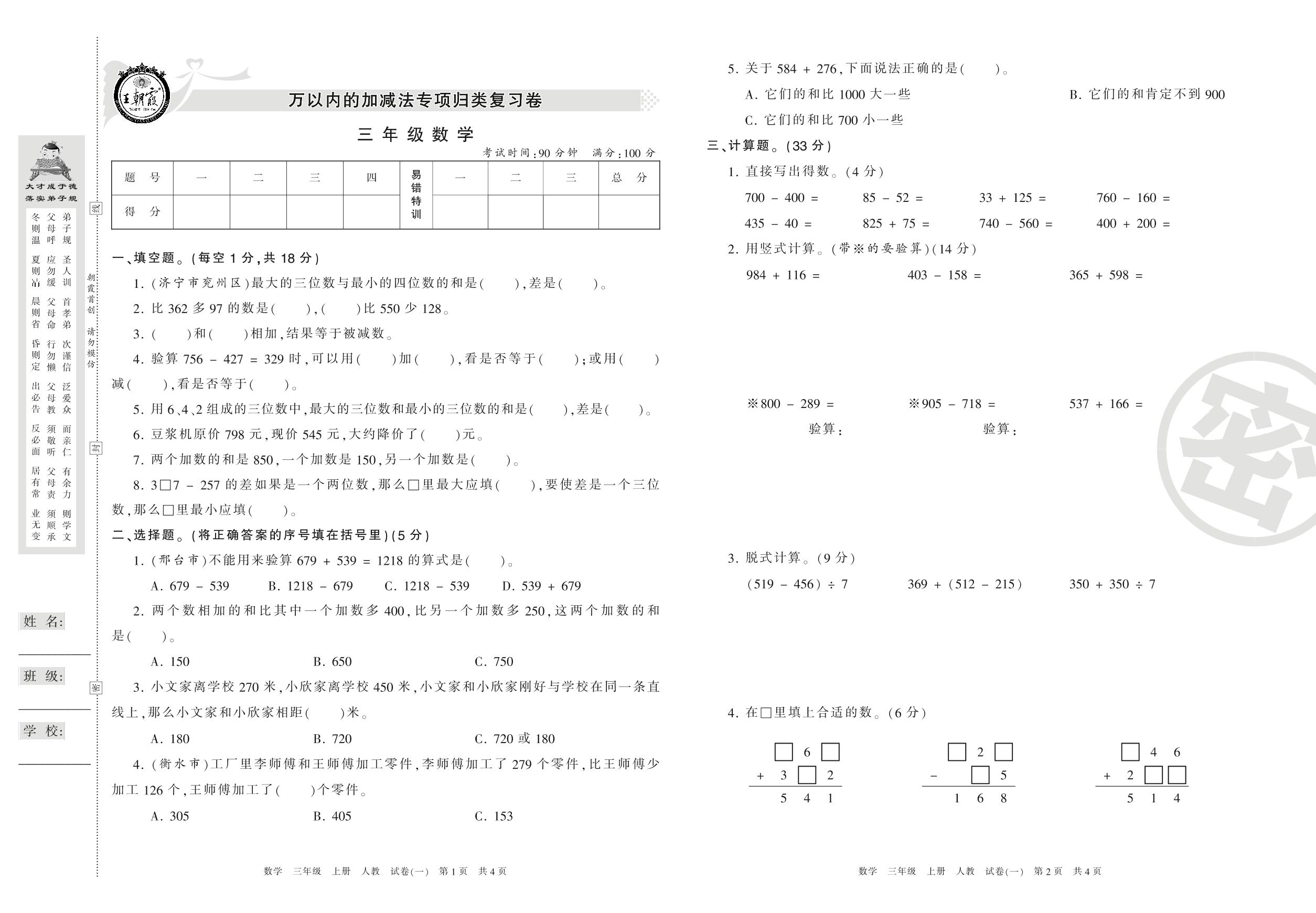 王朝霞期末专项卷三年级上册数学(人教版)_R210804104515【1】