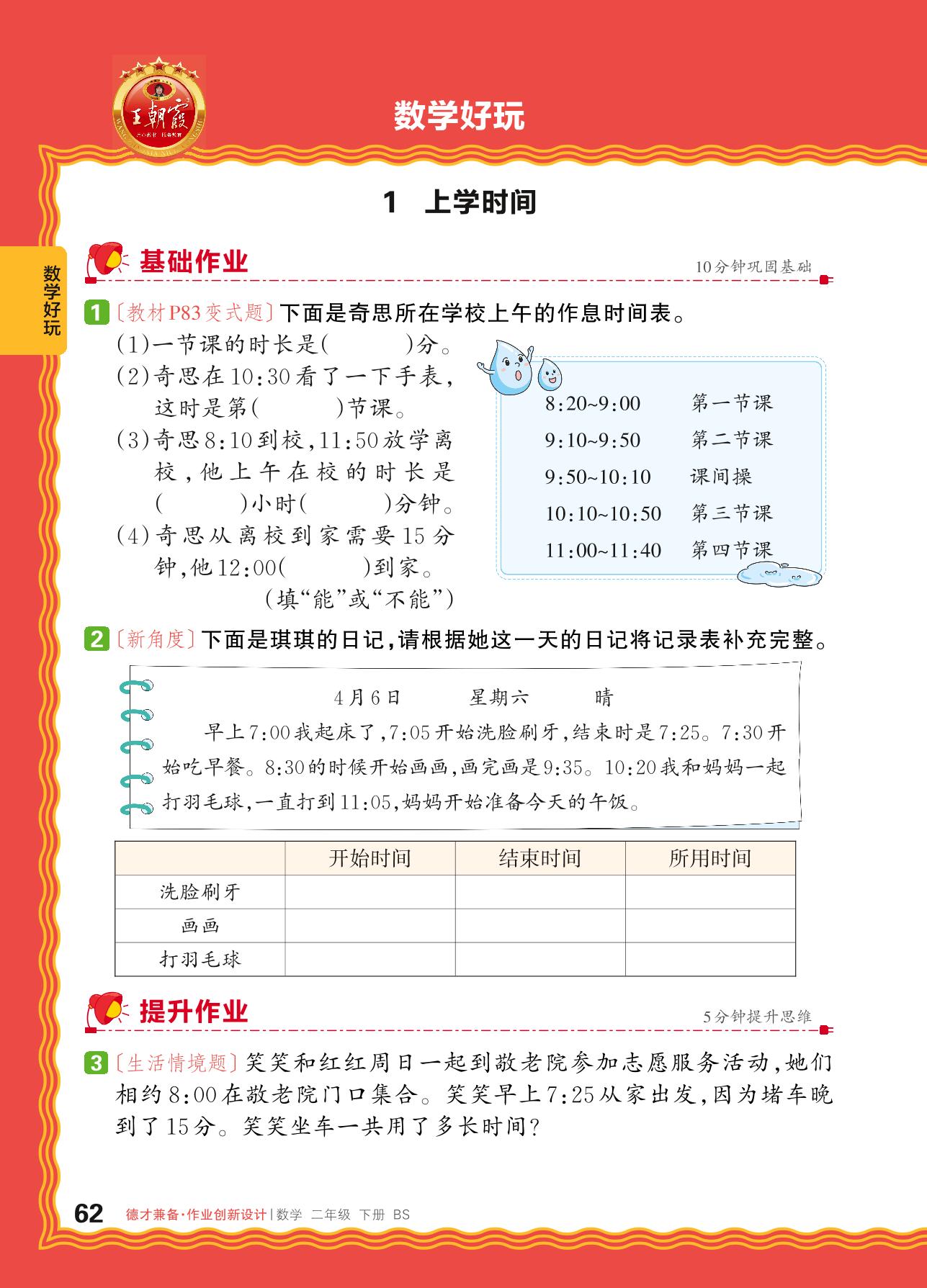 2024春下册二年级数学北师版 数学好玩——1. 上学时间_R240124102102645