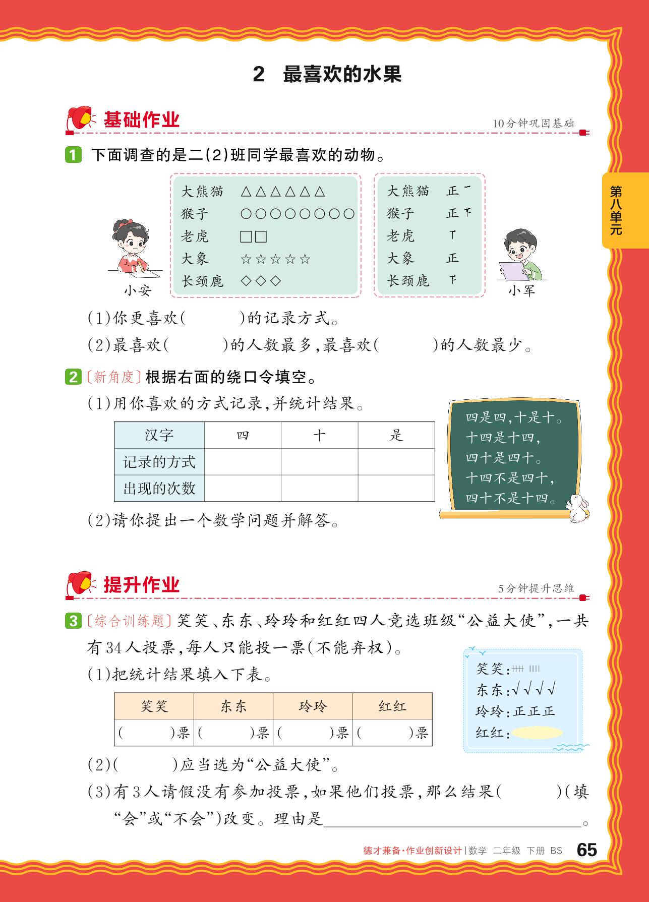 2024春下册二年级数学北师版 第八单元 调查与记录——2. 最喜欢的水果_R240124102103276