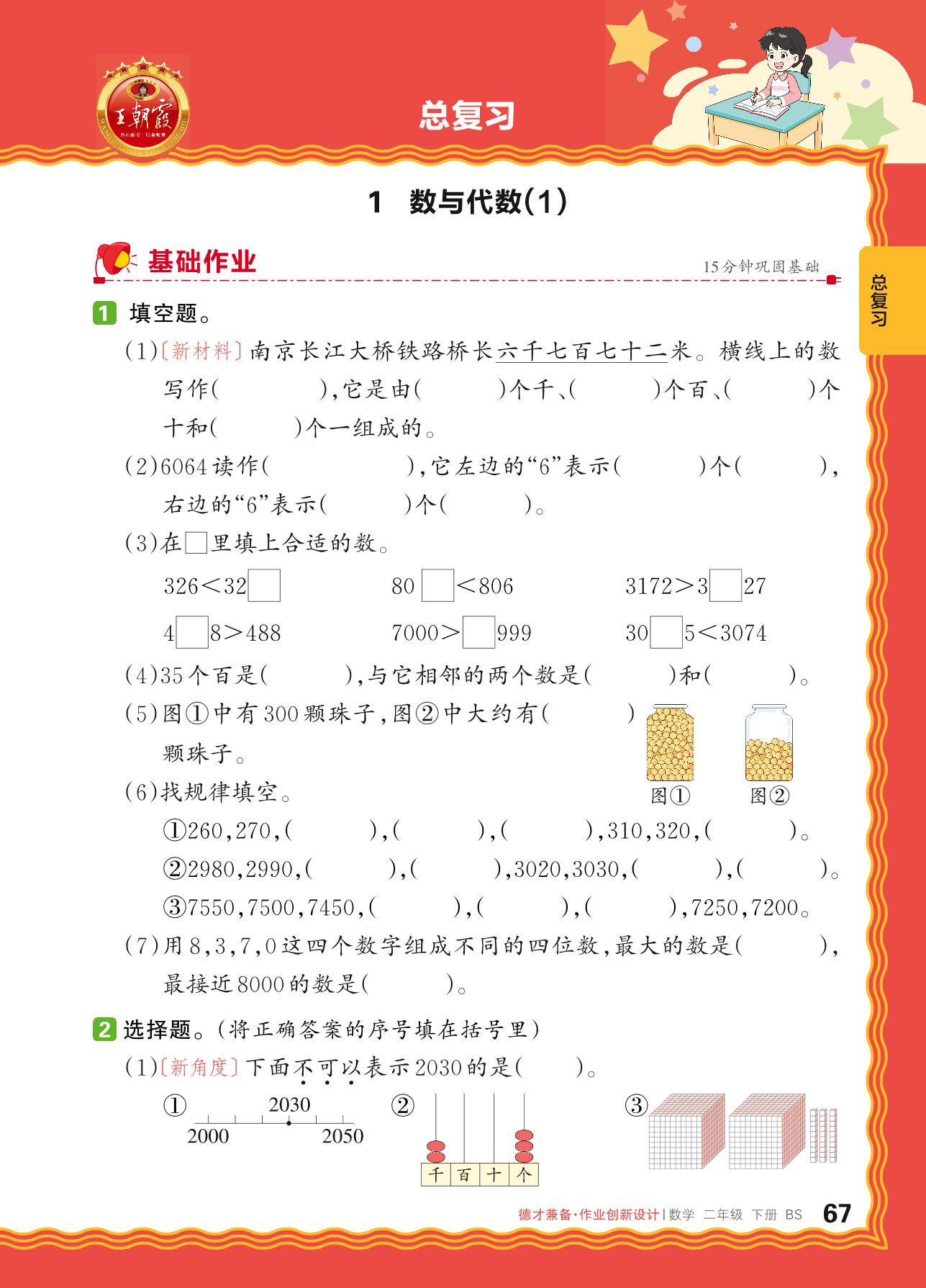 2024春下册二年级数学北师版 总复习——1. 数与代数(1)