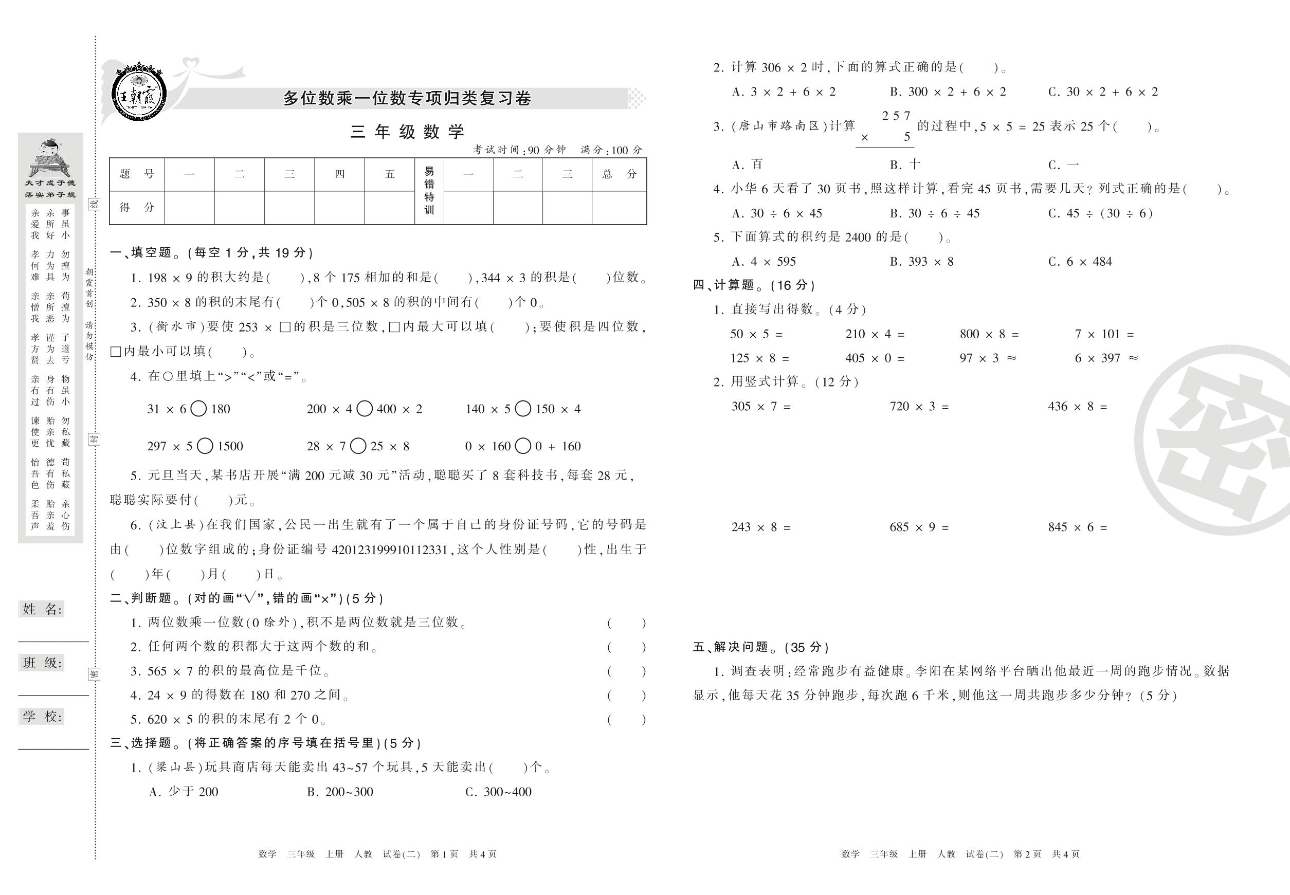 王朝霞期末专项卷三年级上册数学(人教版)_R210804104524【2】