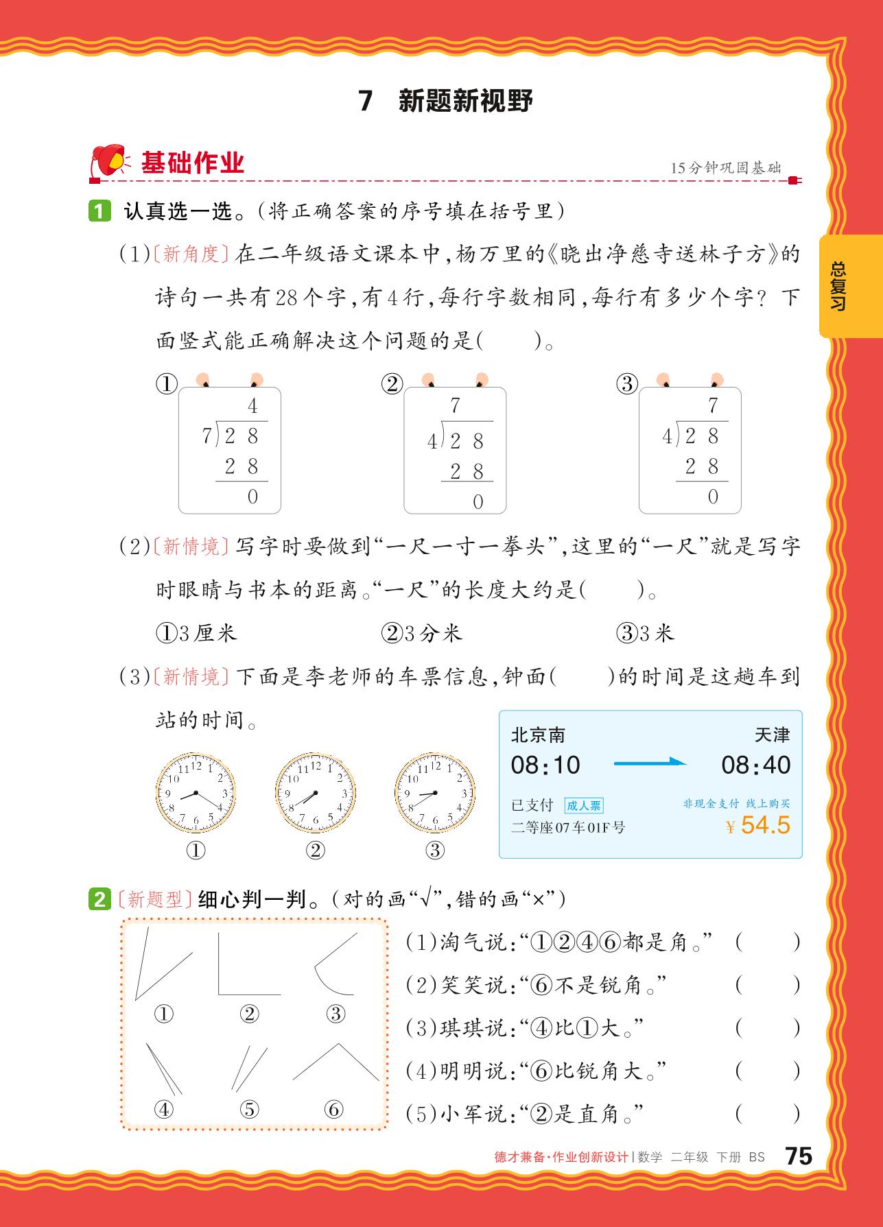 2024春下册二年级数学北师版 总复习——7. 新题新视野