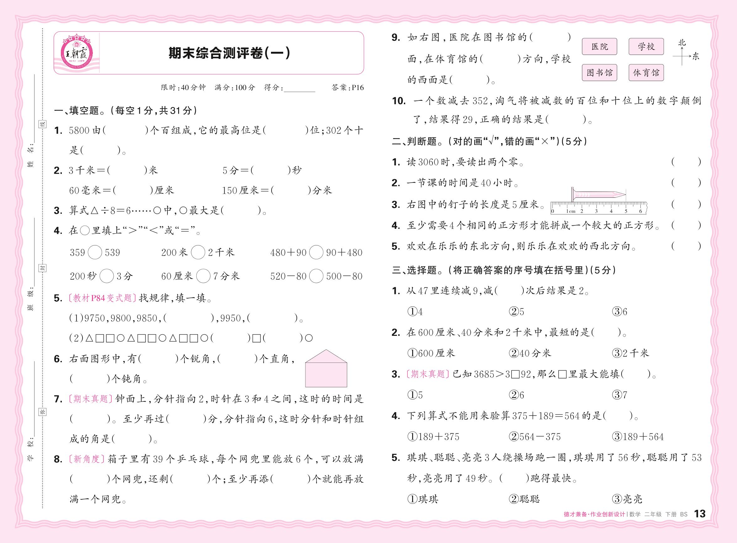 2024春下册二年级数学北师版 期末综合测评卷(一)