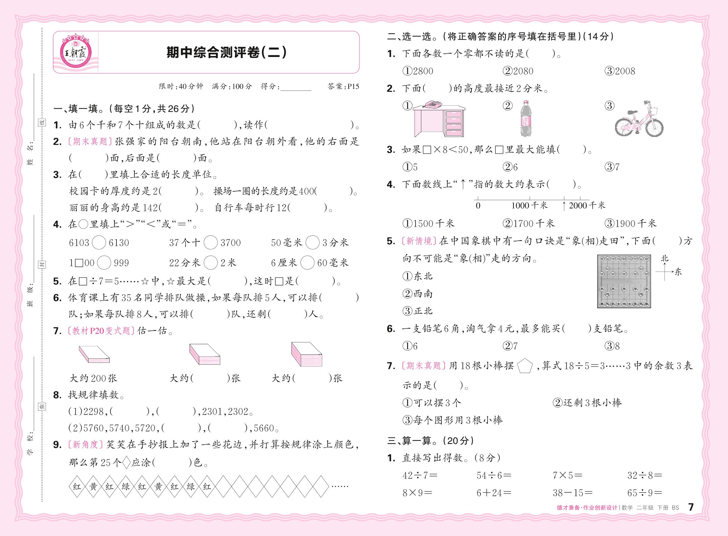 2024春下册二年级数学北师版 期中综合测评卷(二)