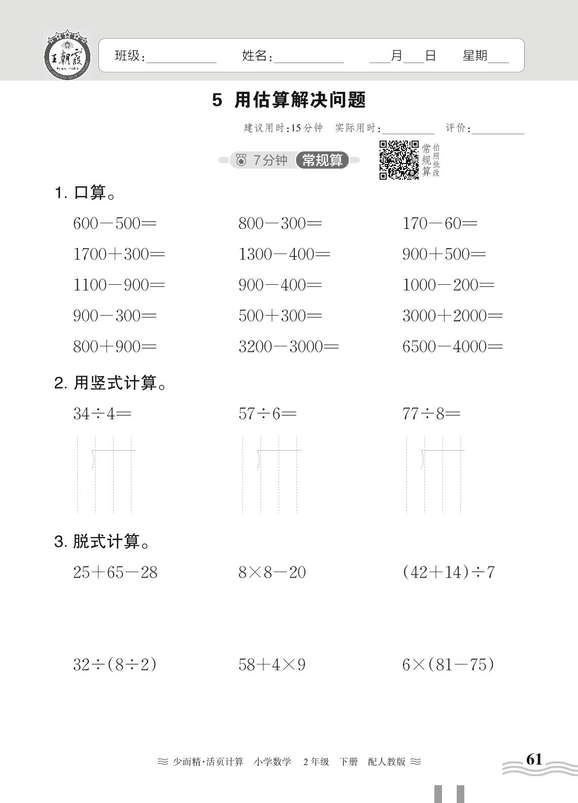 2024春下册二年级数学人教版 第七单元 万以内数的认识——5. 用估算解决问题