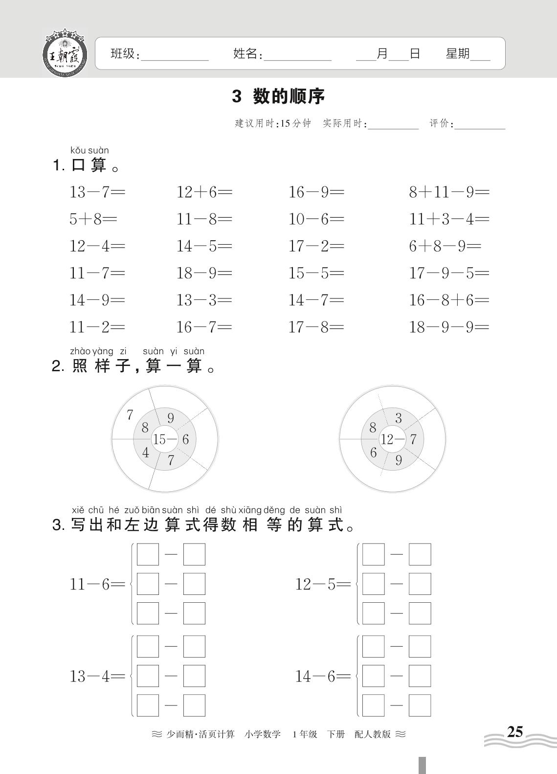 2024春下册一年级数学人教版 第四单元 100以内数的认识——3. 数的顺序