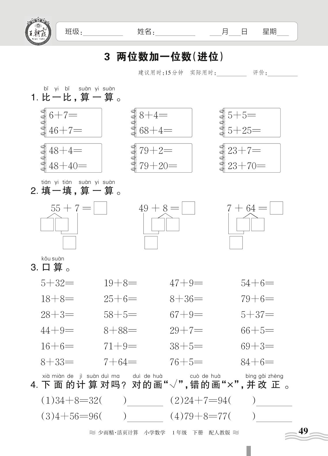 一年级数学人教版下册课时作业