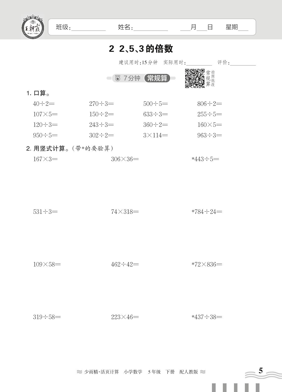2024春下册五年级数学人教版 第二单元 因数和倍数——2. 2、5、3的倍数