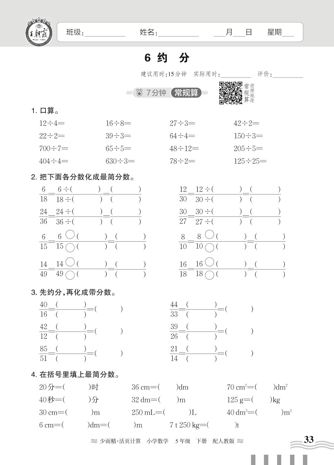 2024春下册五年级数学人教版 第四单元 分数的意义和性质——6. 约分