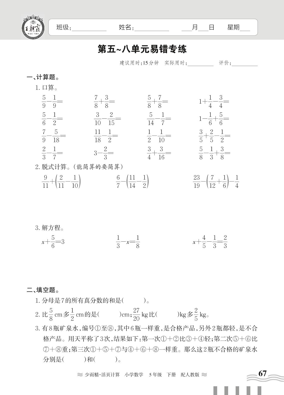2024春下册五年级数学人教版 第五~八单元易错专练