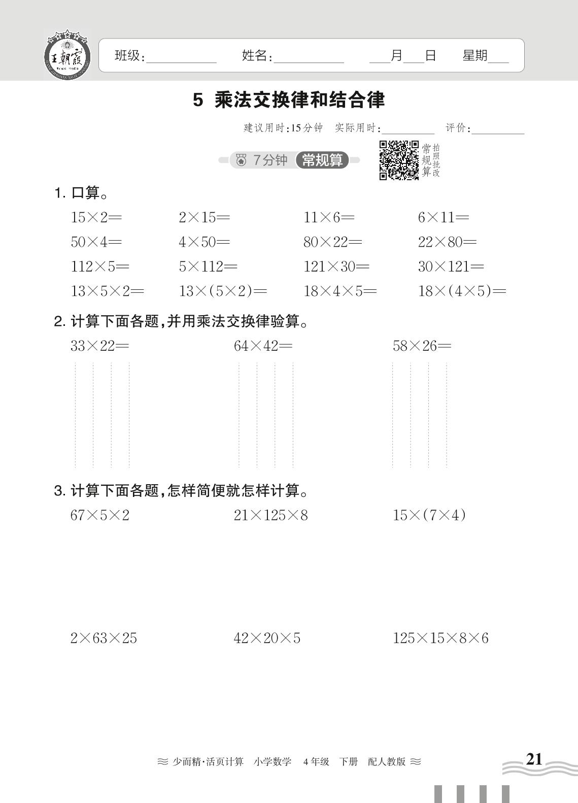 2024春下册四年级数学人教版 第三单元 运算律——5. 乘法交换律和结合律_R240124111813872