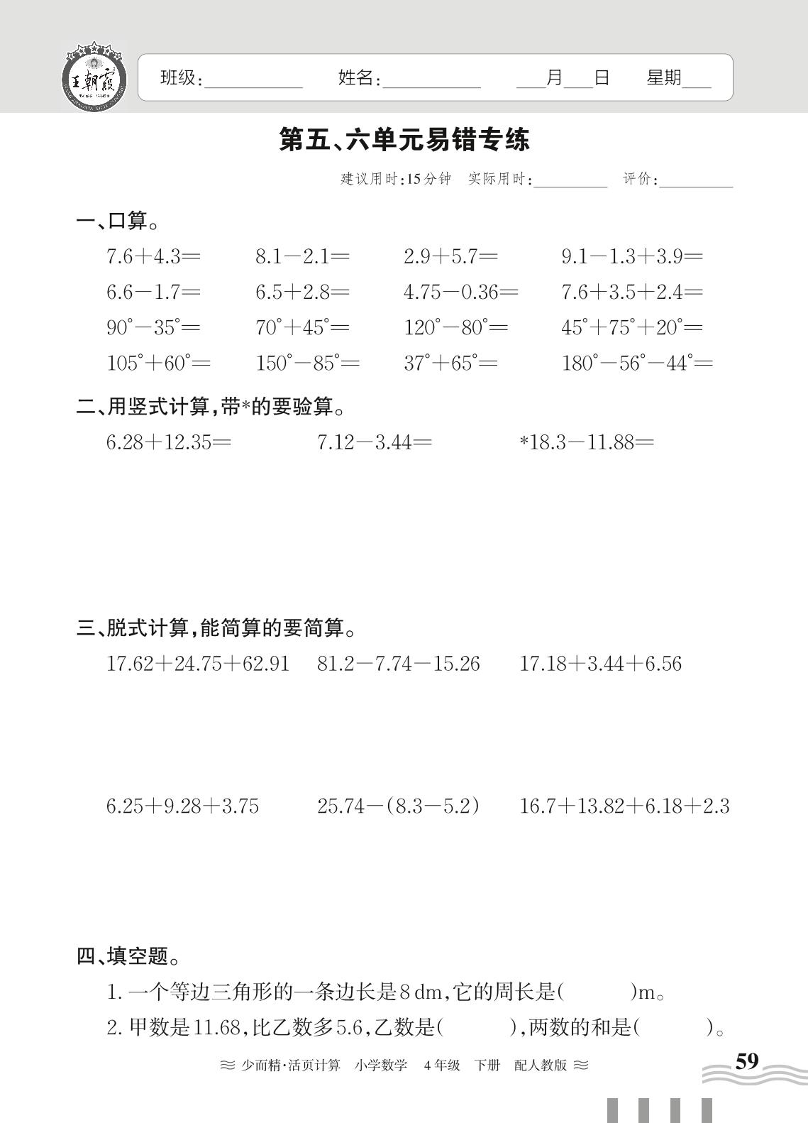 2024春下册四年级数学人教版 第五、六单元易错专练