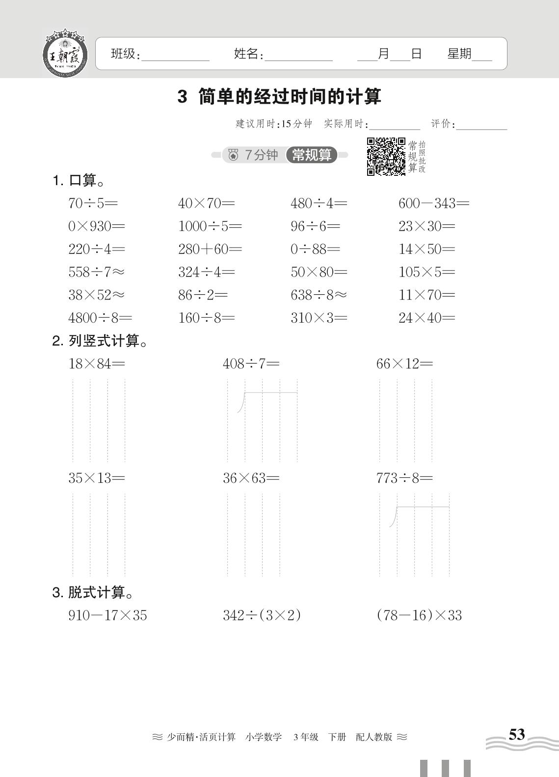 2024春下册三年级数学人教版 第六单元 年、月、日——3. 简单的经过时间的计算