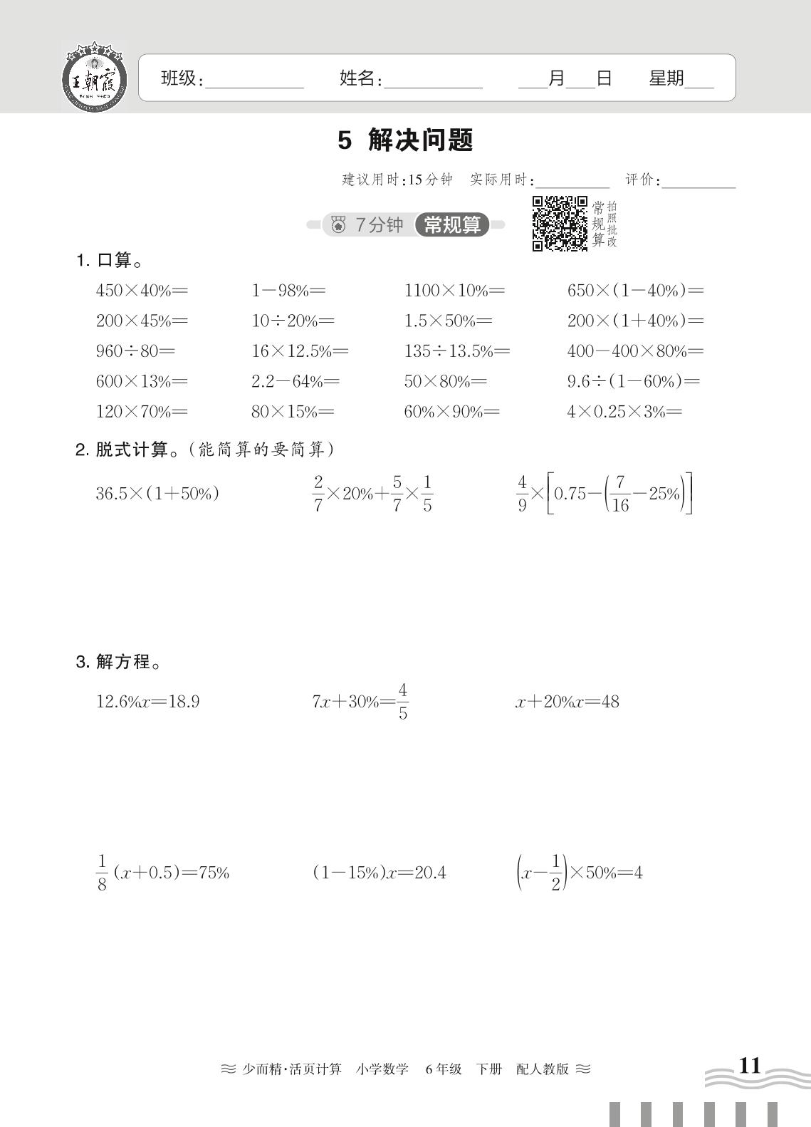 2024春下册六年级数学人教版 第二单元 百分数(二)——5. 解决问题_R240124113555980