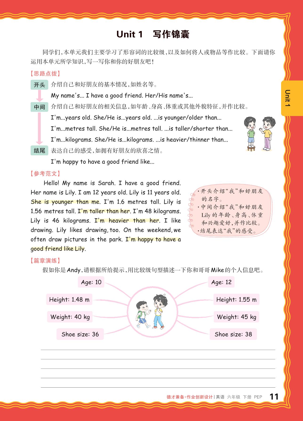 2024春下册六年级英语人教PEP版 Unit 1 写作锦囊