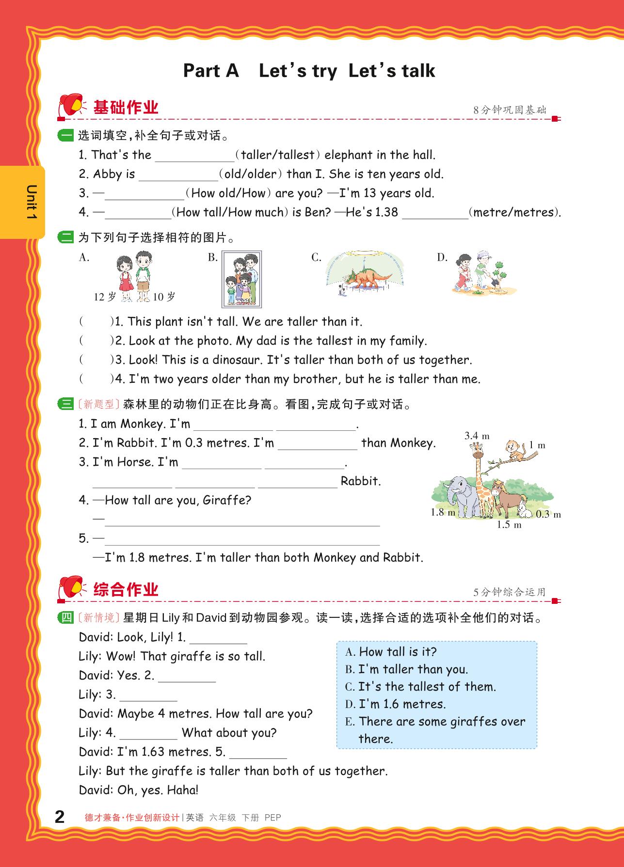 2024春下册六年级英语人教PEP版 Unit 1—Part A Let’s try Let’s talk