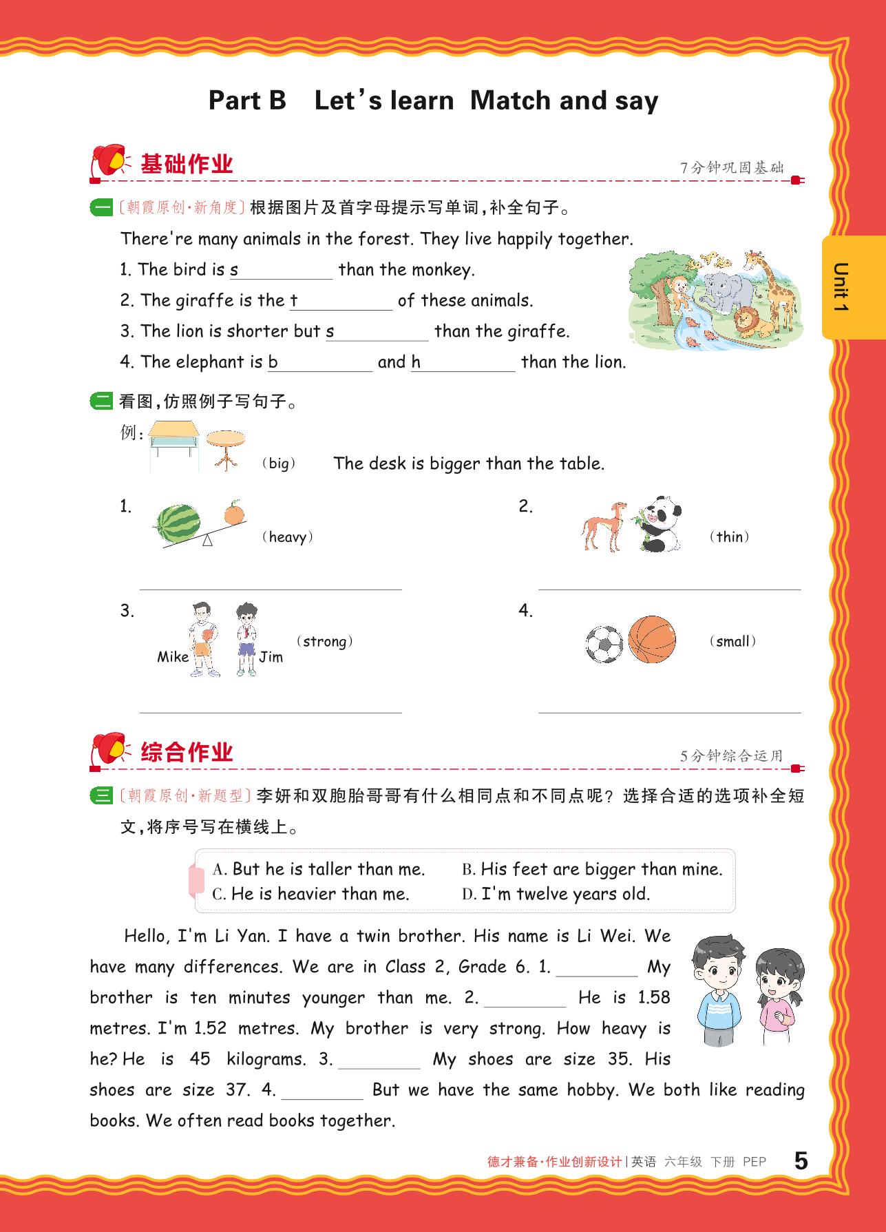 2024春下册六年级英语人教PEP版 Unit 1—Part B Let’s learn Match and say