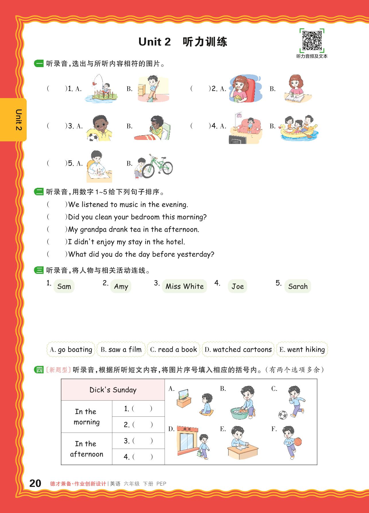 2024春下册六年级英语人教PEP版 Unit 2 听力训练