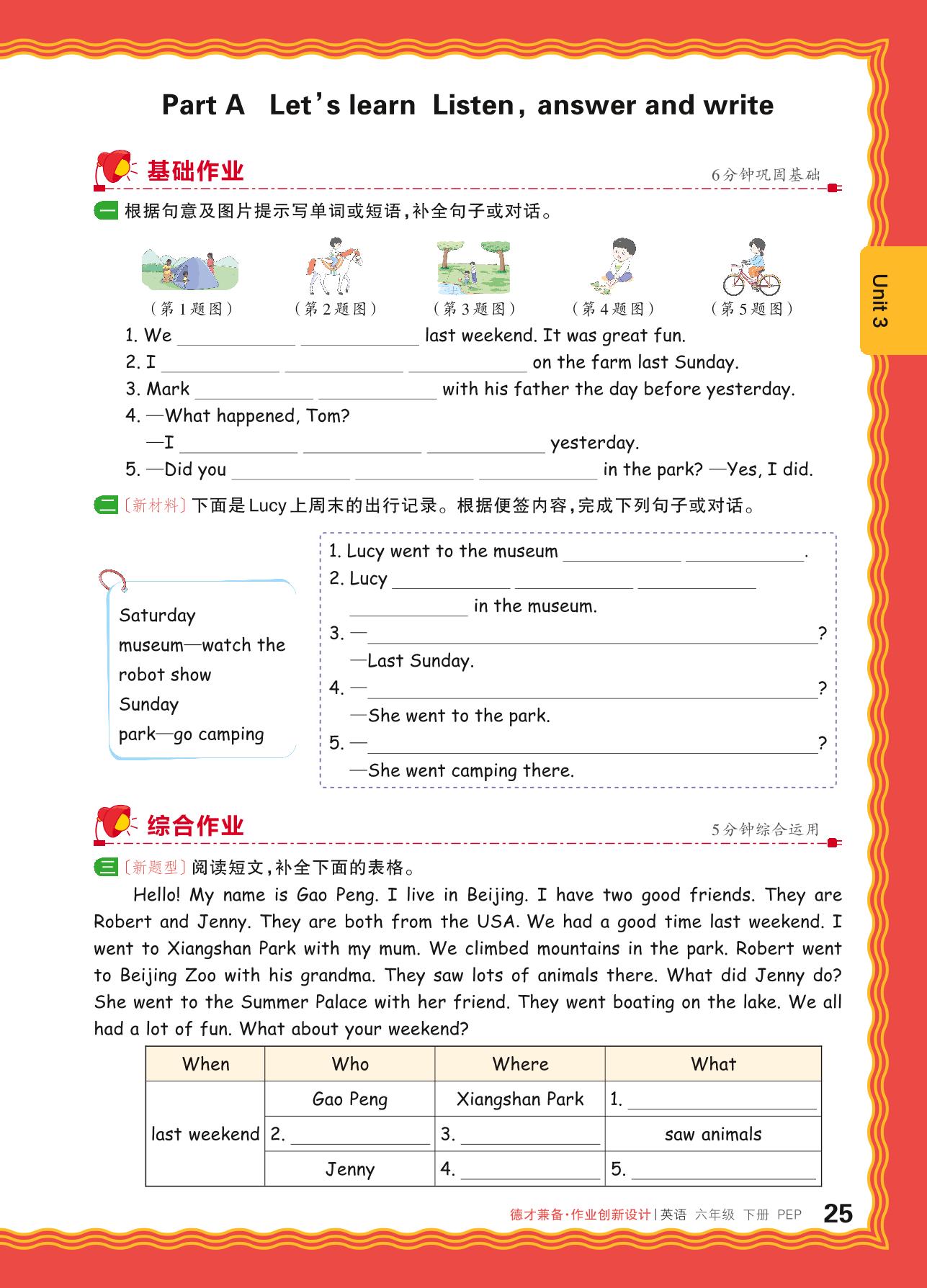 2024春下册六年级英语人教PEP版 Unit 3—Part A Let’s learn Listen,answer and write